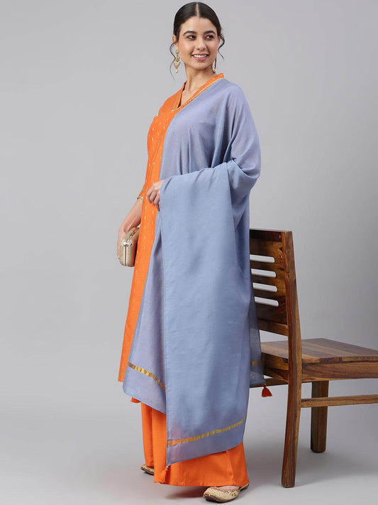 Grey Poly Silk Solid Kurta with Dupatta