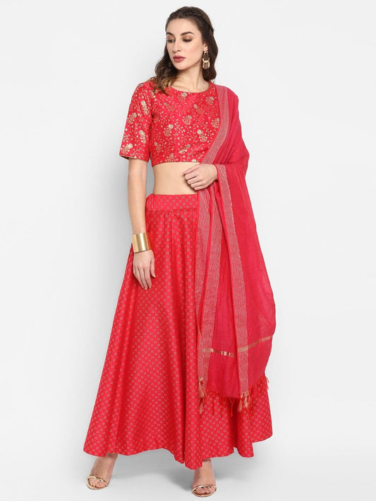 Pink Poly Silk Gold Print Lehenga Choli With Dupatta