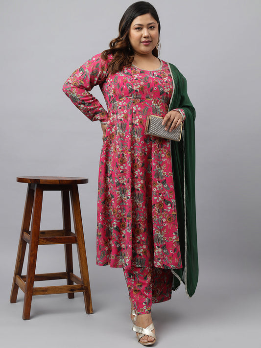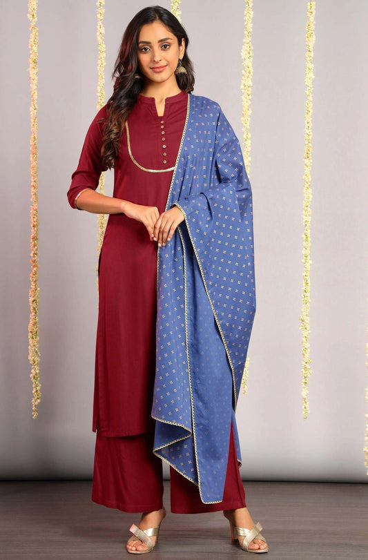 Magenta Rayon Kurta With Palazzo and Dupatta
