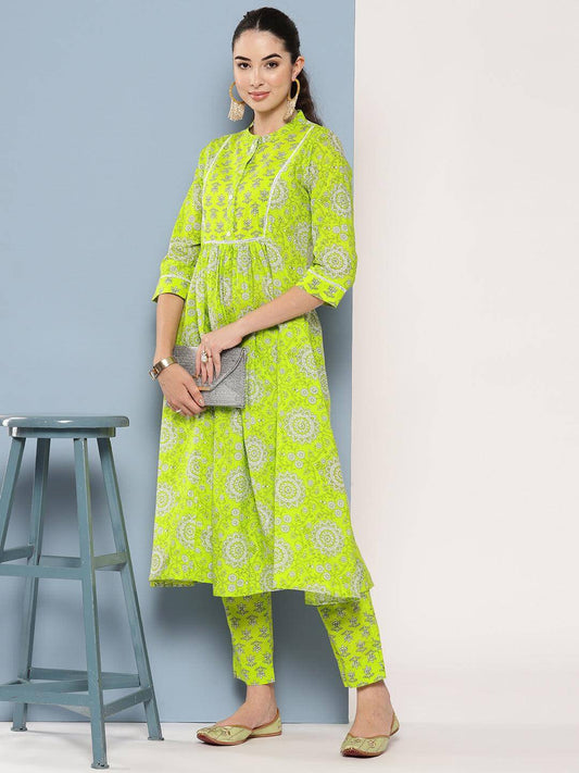 Light Green Cotton Block Printed Kurta with Pant