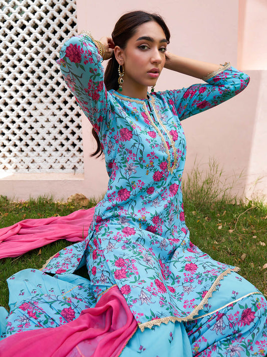 Women Sky Blue Georgette Sharara Suit With Dupatta