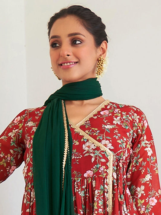 Maroon Georgette Kurta Sharara Set With Dupatta