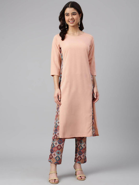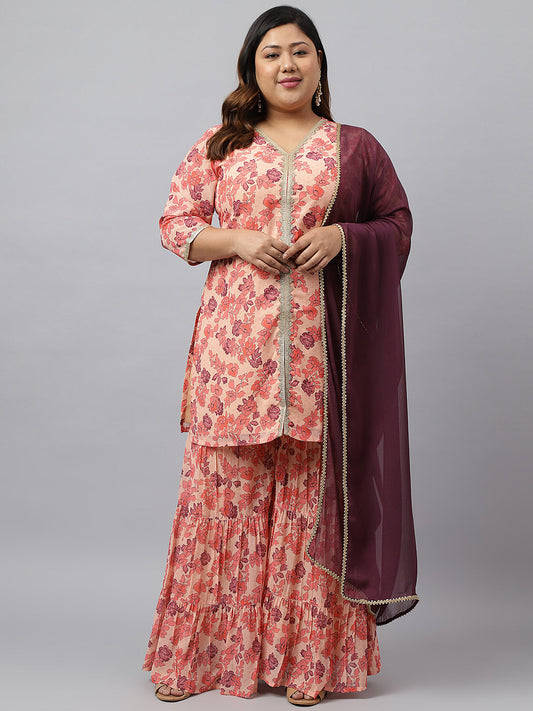 Women's Pink Cotton Floral Print Kurta with Palazzo and Dupatta