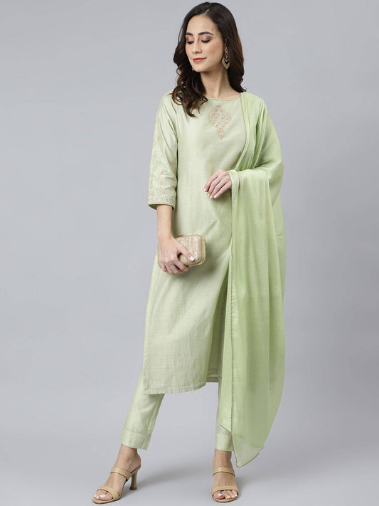 Sea green Poly Silk Solid Kurta with Pant and Dupatta
