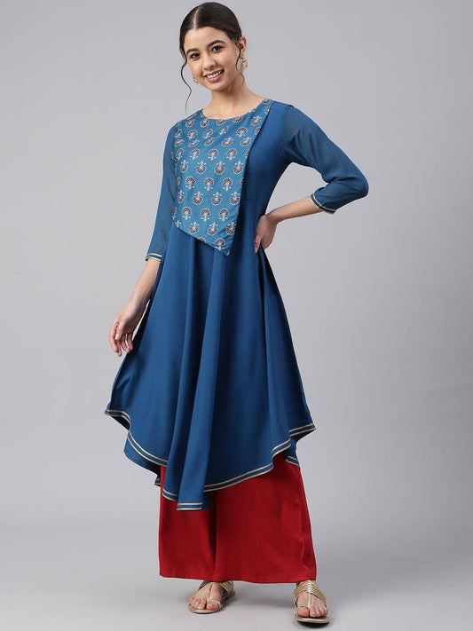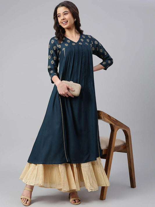 Teal Rayon Solid A-line Kurta