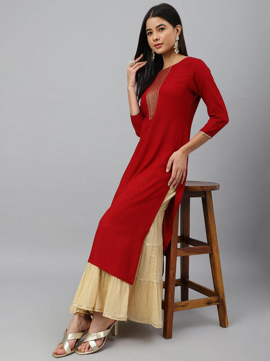 Maroon Rayon Solid Straight Kurta