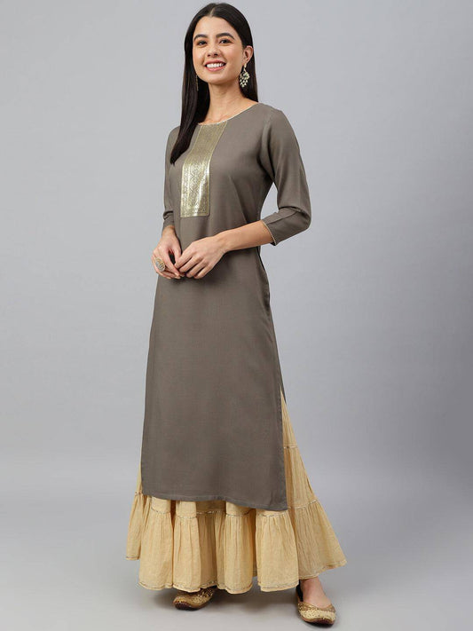 Grey Rayon Solid Straight Kurta