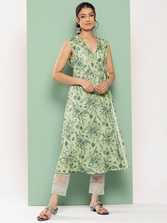 Light Green Crepe Digital Printed Angrakha Kurta