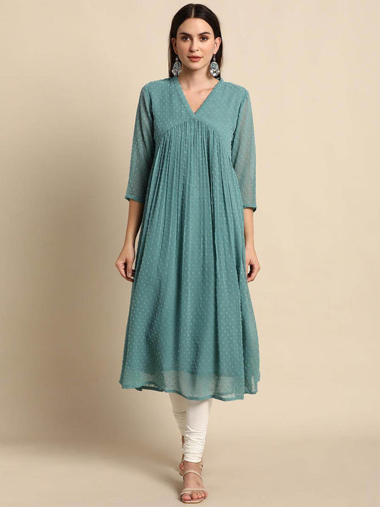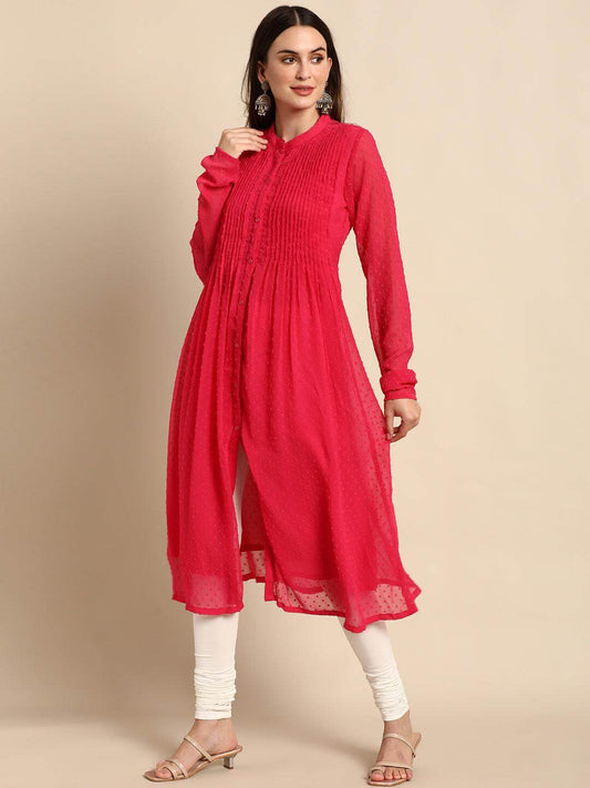Pink Poly Chiffon Self Design Frontslit Kurta