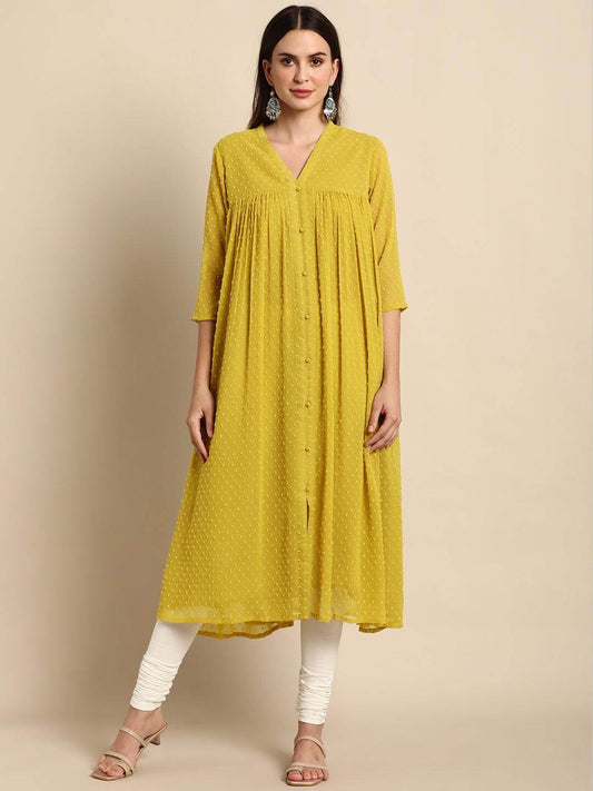 Mustard Poly Chiffon Self Design Frontslit Kurta