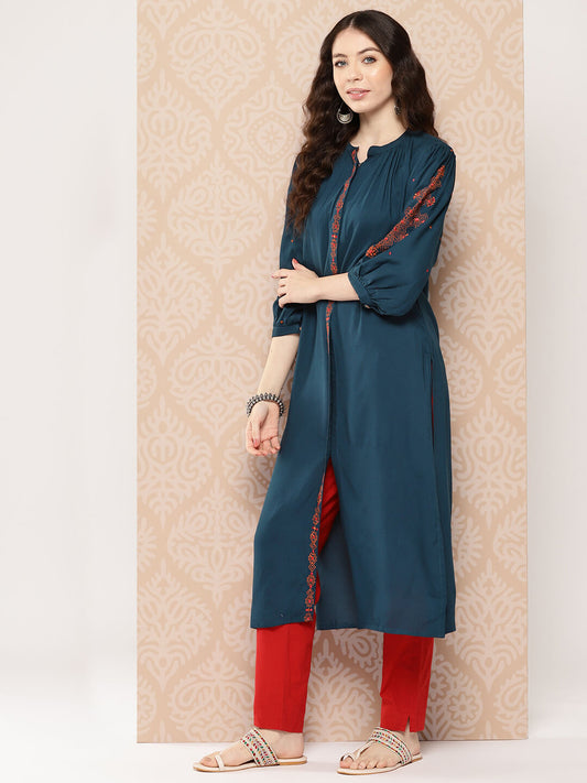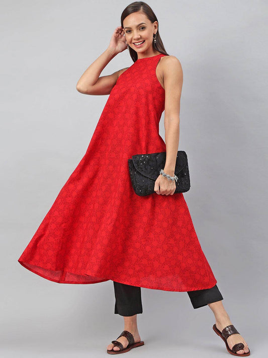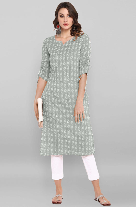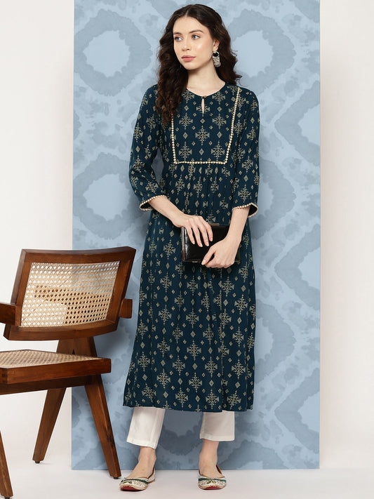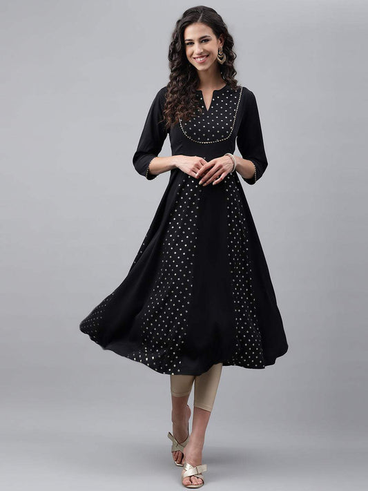 Bottle Green Crepe Foil Printed A-Line Kurta