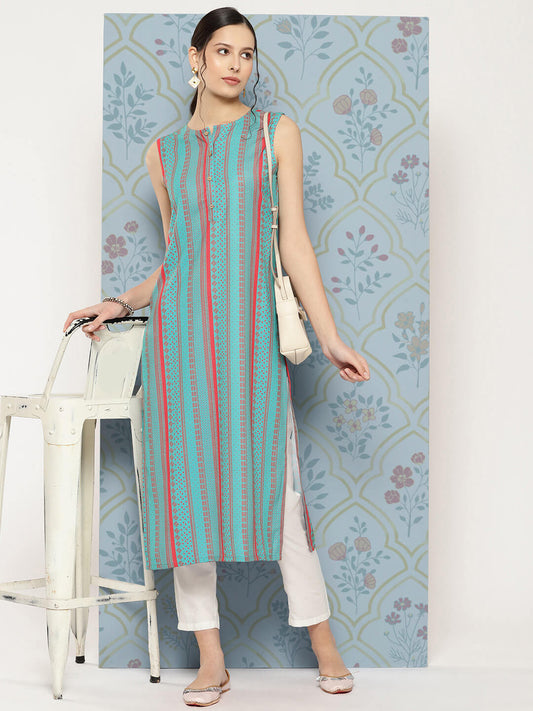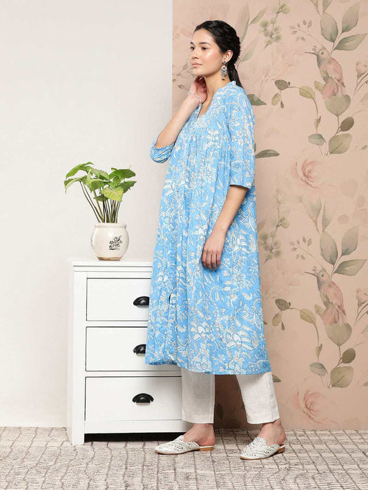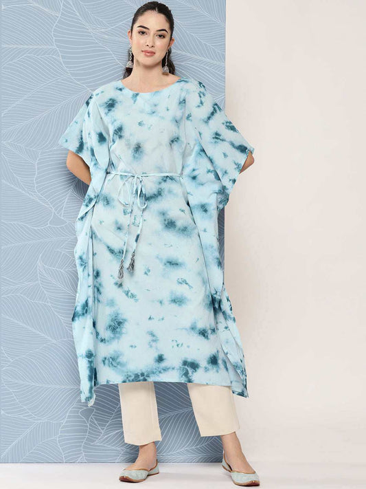 Sky Blue Cotton Tie-Dye Kaftan Kurta