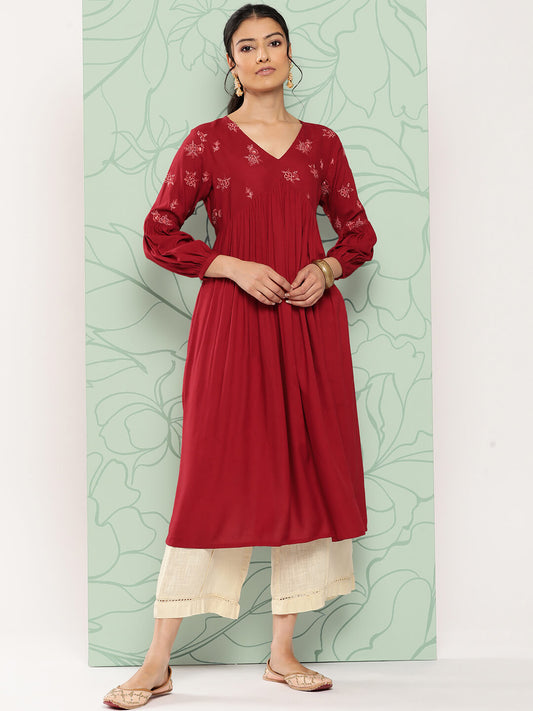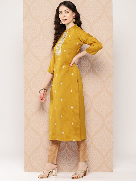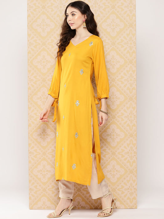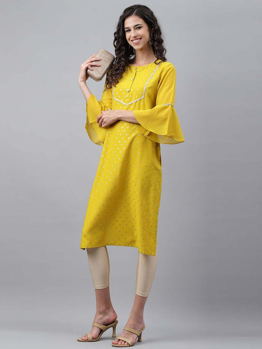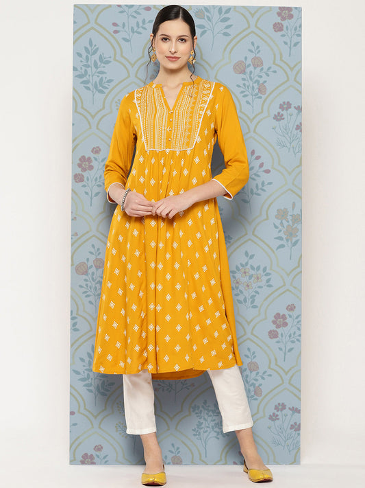Yellow Rayon Ethnic Motif Printed A-Line Kurta