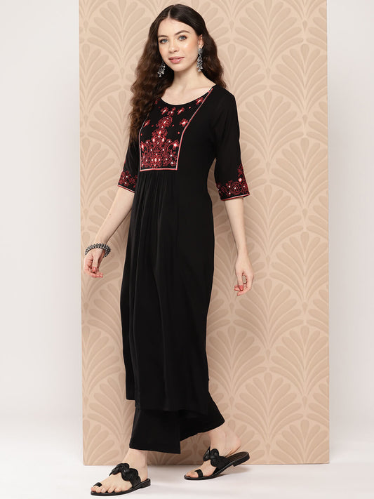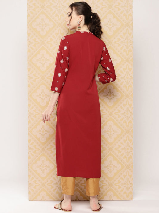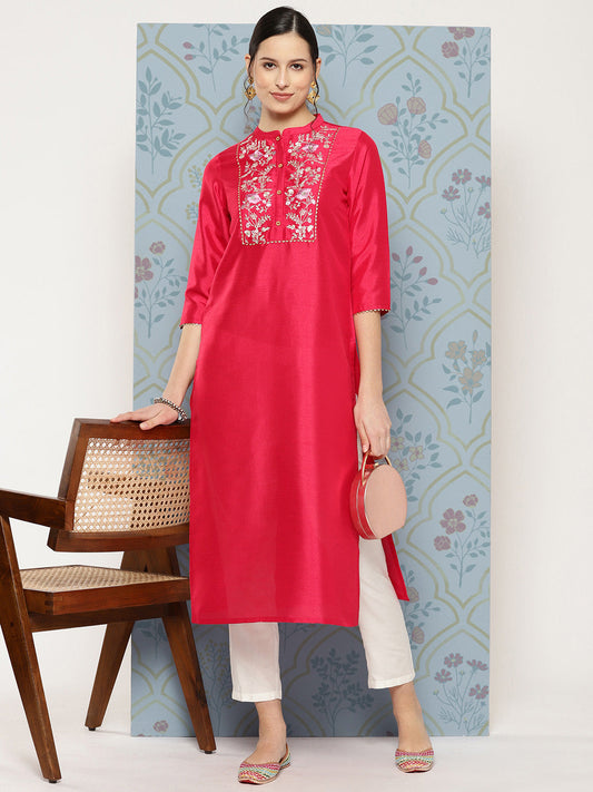 Pink Crepe Silk Yoke Embroidered Straight Kurta