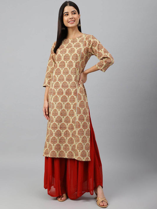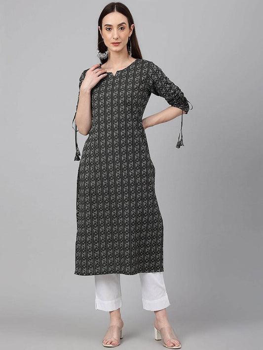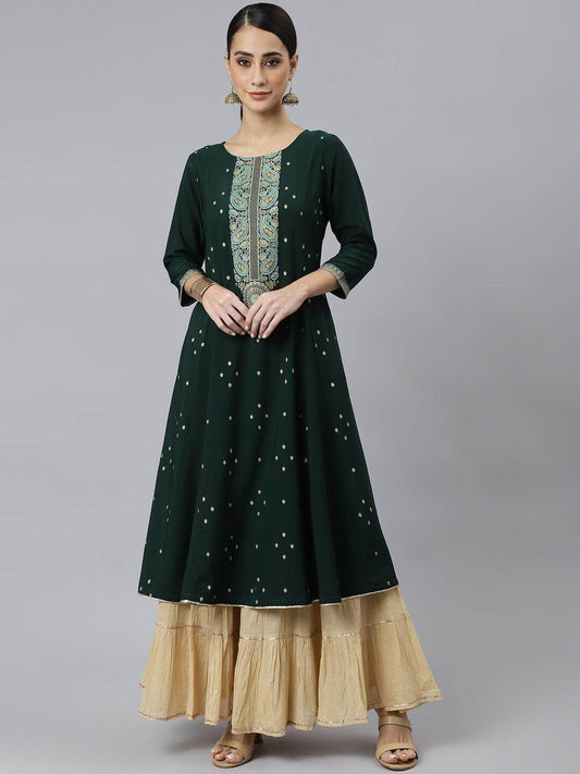 Dark Green Cotton Ethnic Motifs Straight Kurta
