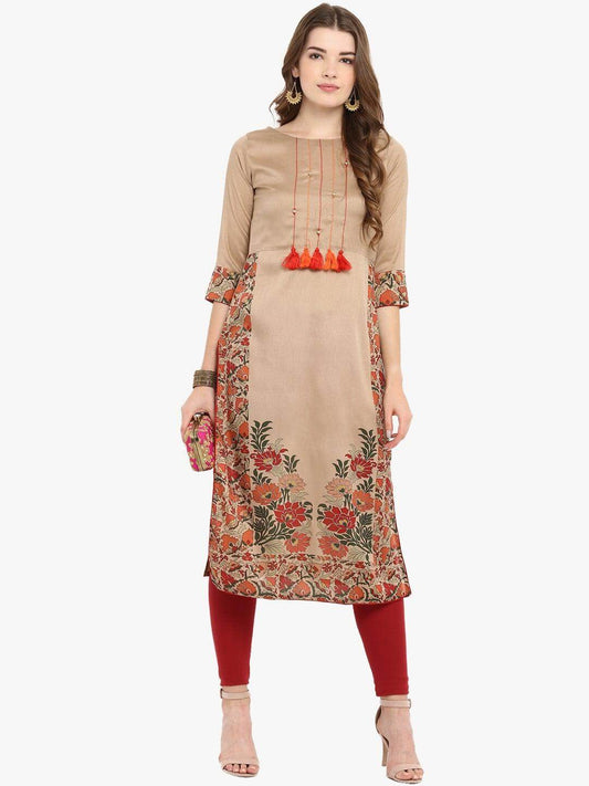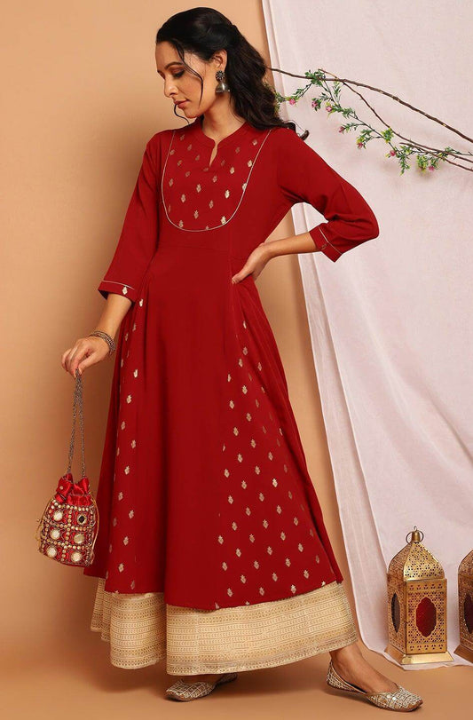 Maroon Poly Crepe Ethnic Motifs A-line Kurta