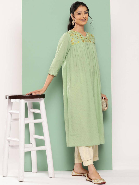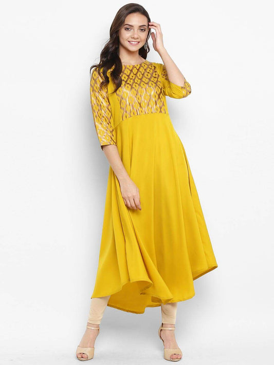Yellow Chiffon Lurex Floral Printed flared Kurta