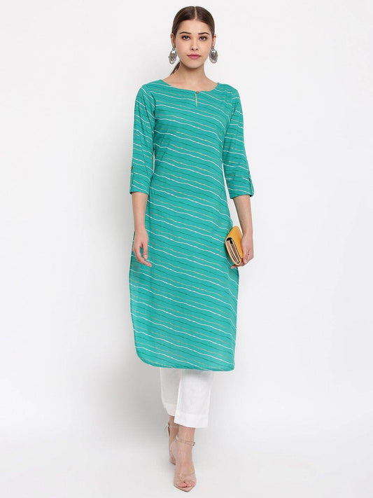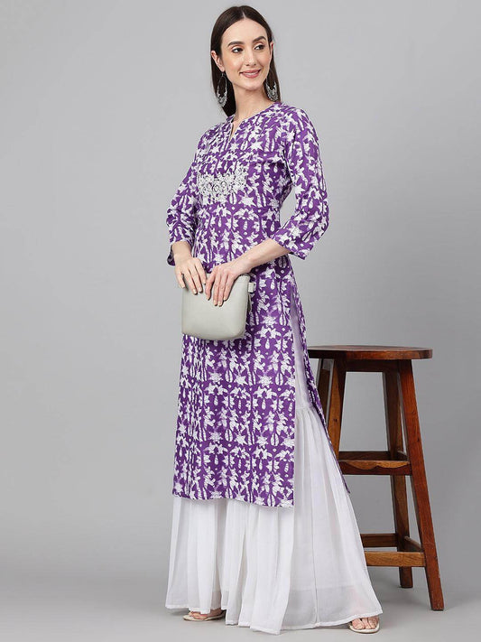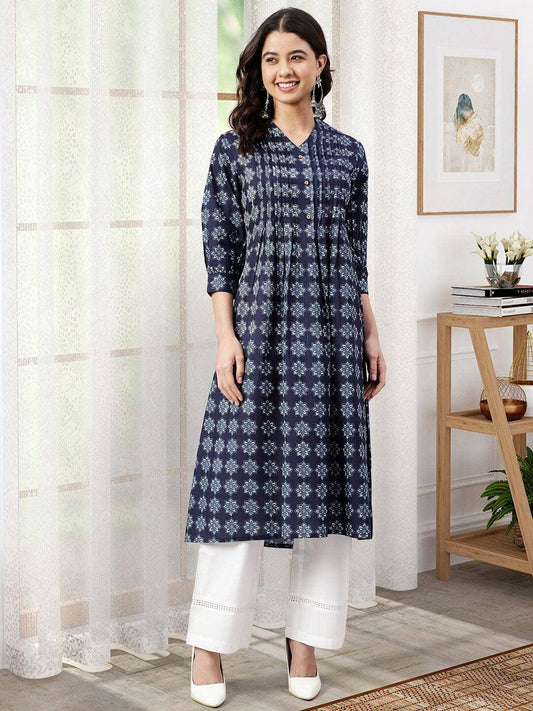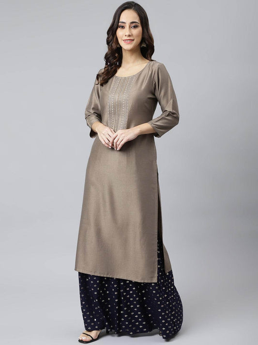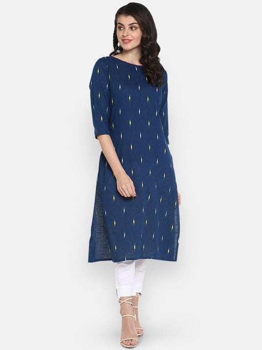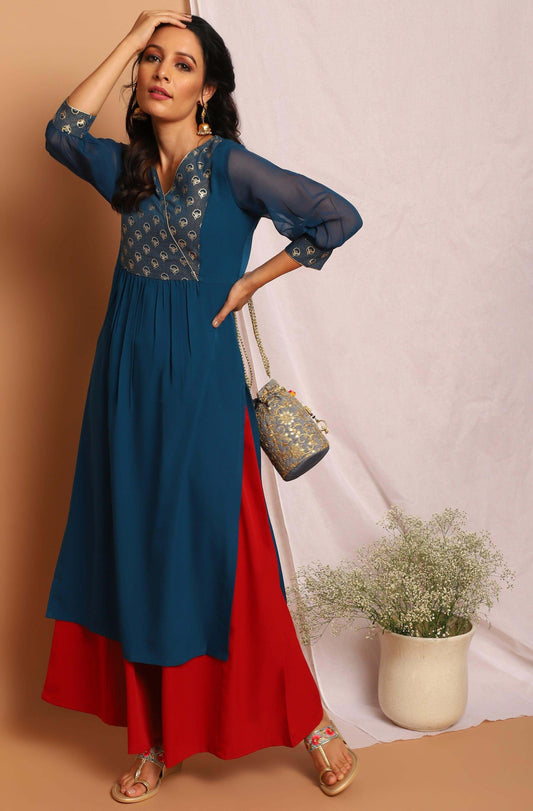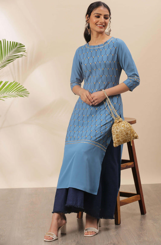 Blue Poly Crepe Ethnic Motifs Straight Kurta