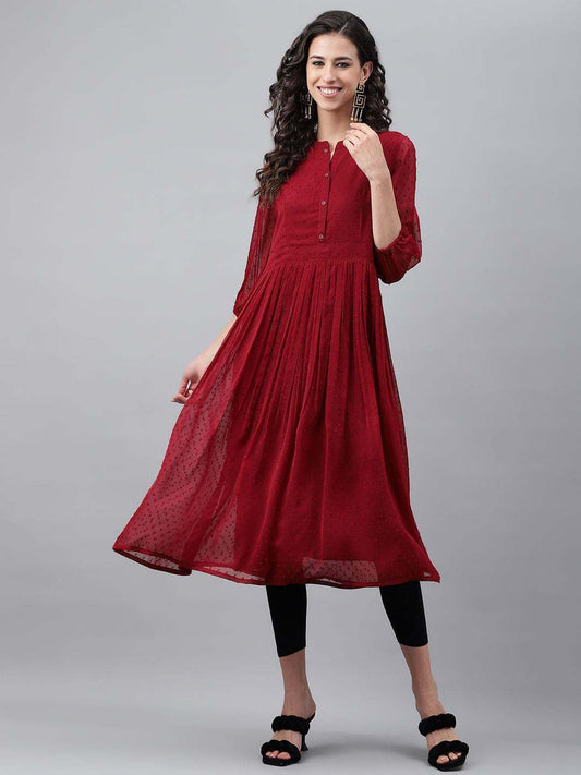 Maroon Dobby Chiffon Self Design Flared Kurta
