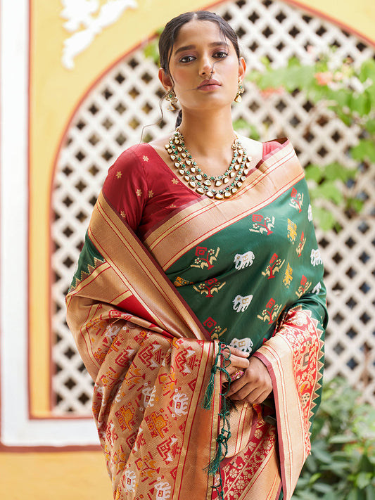 Green Paithani Silk Woven Bagh Design Saree with Unstitched Blouse Piece