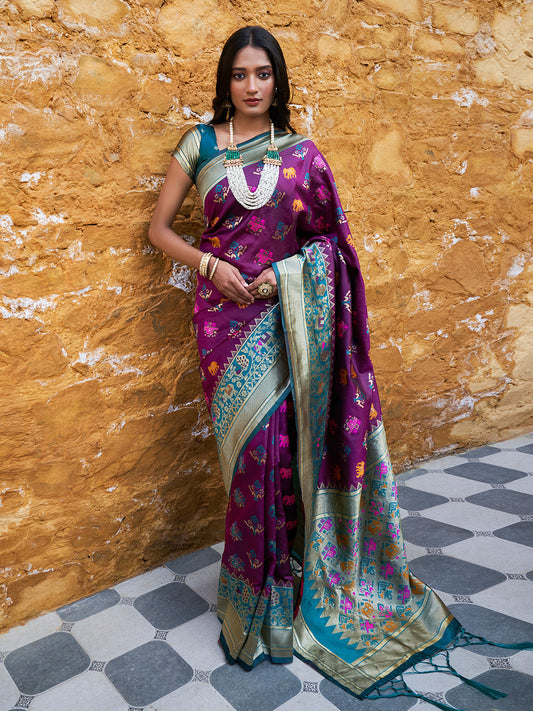Teal Paithani Silk Ethnic Motifs Saree with Unstitched Blouse Piece