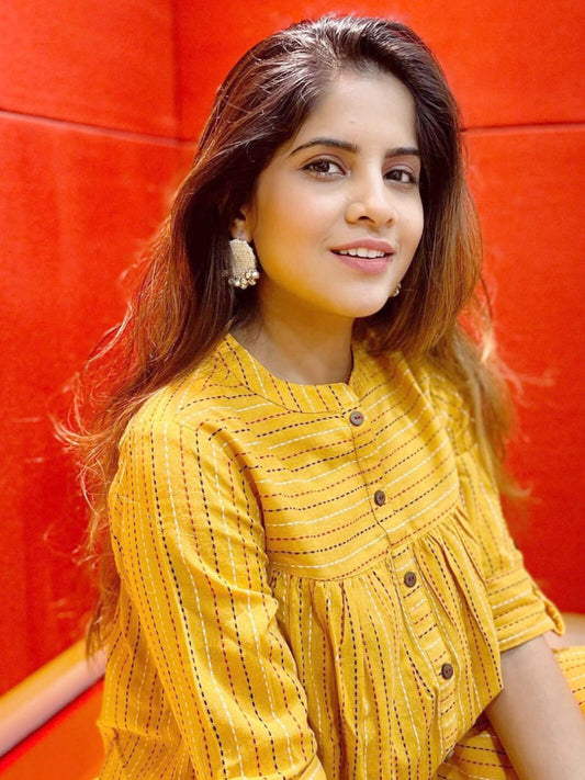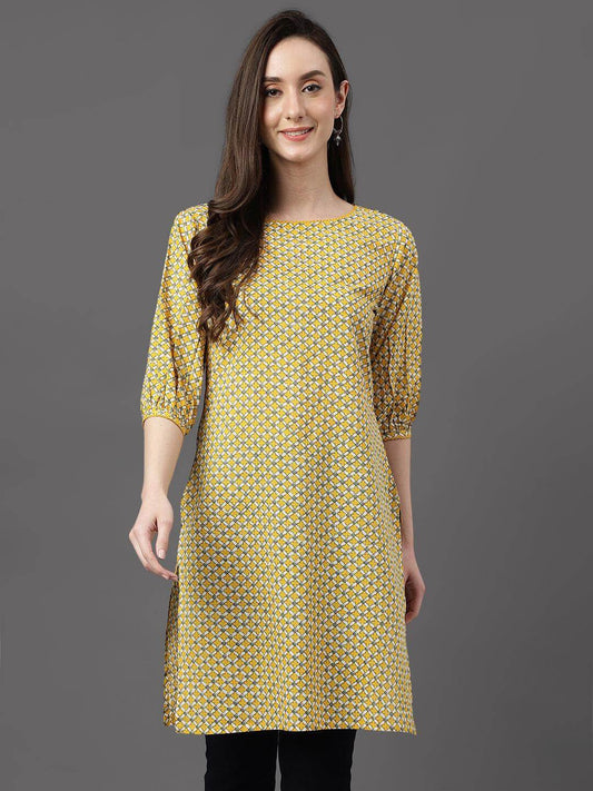 Yellow Cotton Ethnic Motifs Regular Tunic