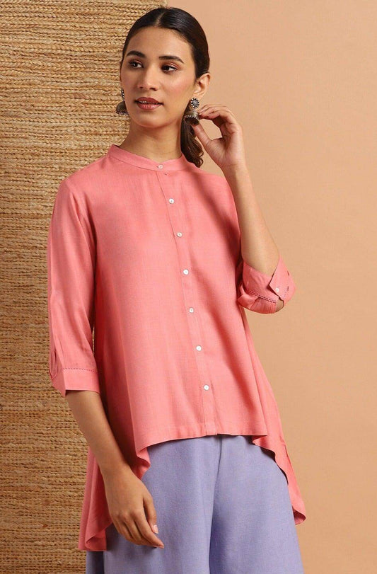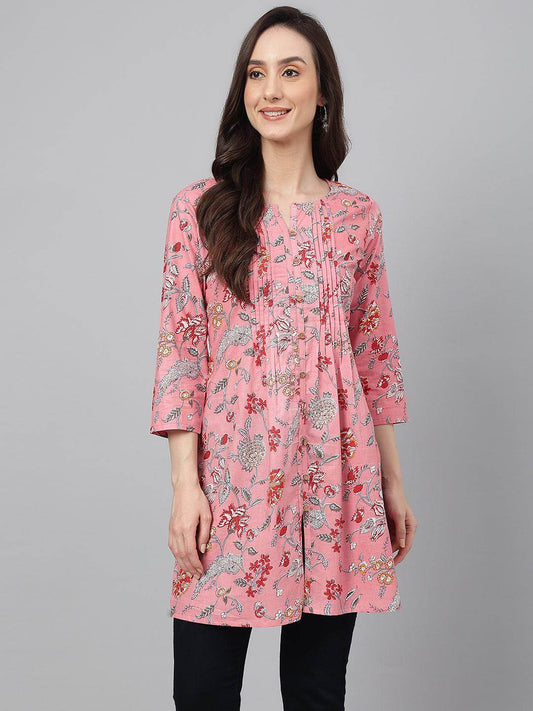 Pink Cambric Cotton Floral Print Gathered Tunic