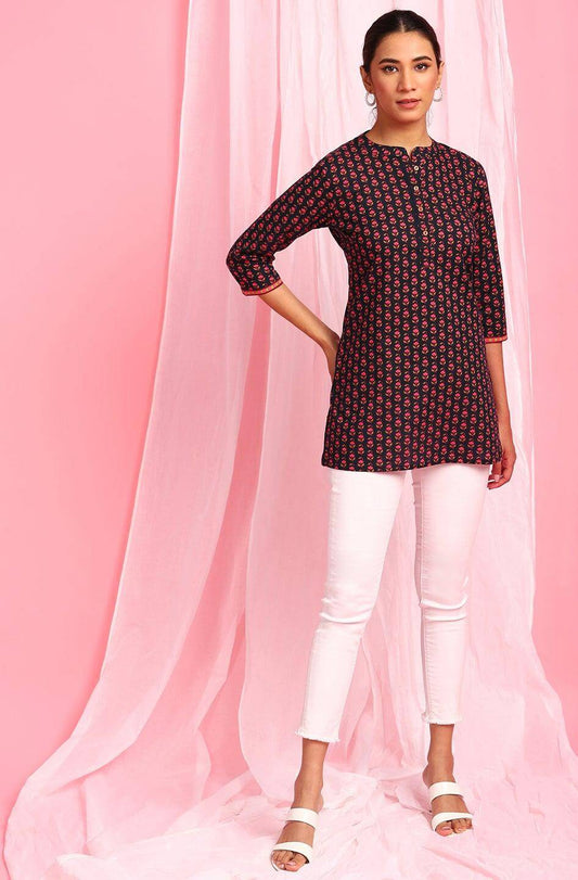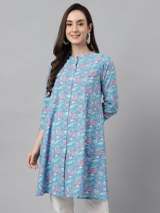Women's Multicolor Cotton Botanical Print A-Line Tunic
