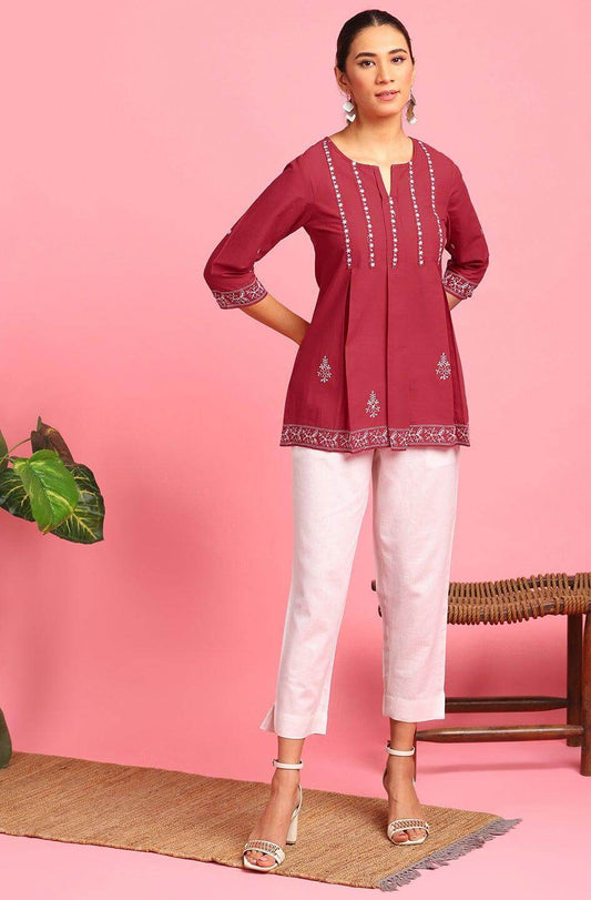 Maroon Dobby Cotton Solid Handkerchief Tunic