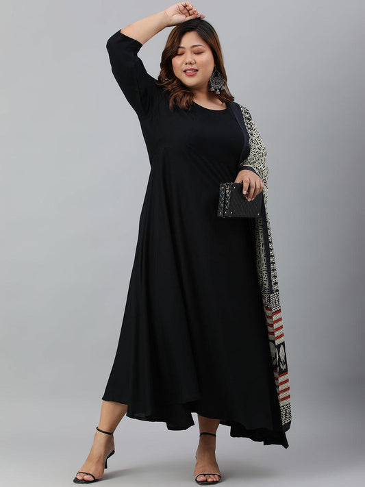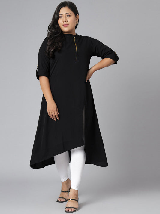 Plus Size Black Poly Crepe Solid High Low Kurta