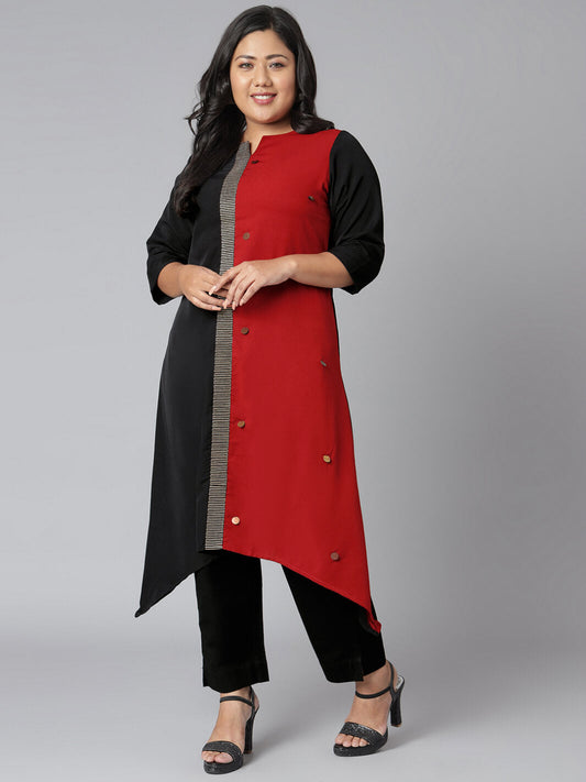 Plus Size Black Poly Crepe Colorblock Asymmetric Kurta