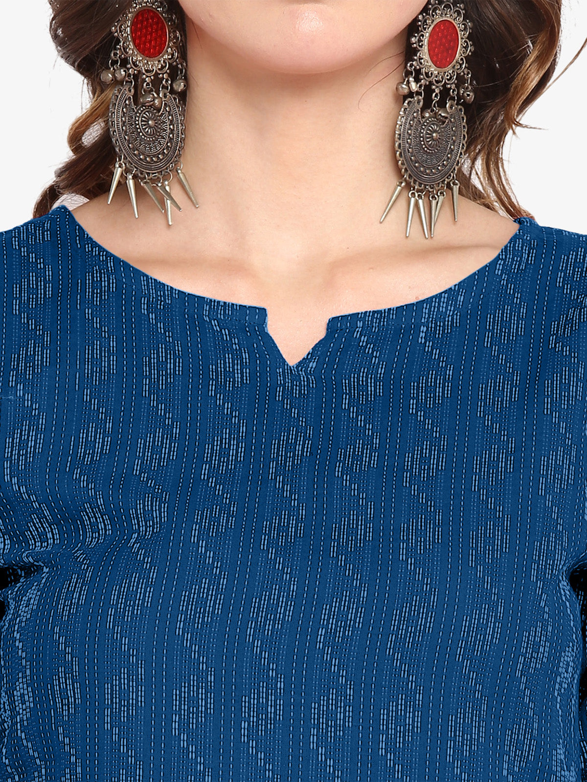- Style:- Length: 44(inch) | Pattern: Woven Design | Occasion: Casual | Type: Straight | Sleeve Type: 3/4 Sleeves Regular Sleeves | Color: Blue
