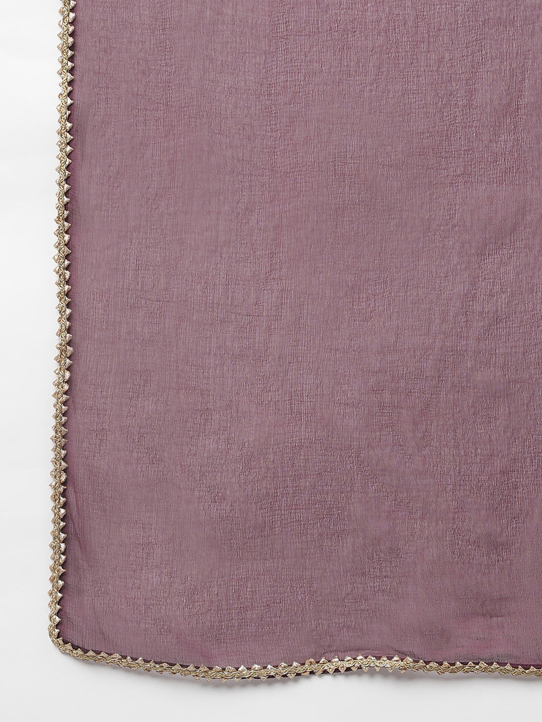 - Peach georgette digital floral printed Kurta Sharara set with voilet solid dupatta by Janasya, a stylish and elegant ensemble for any occasion.This set features a beautiful peach georgette kurta with a straight silhouette, 3/4th regular sleeves with V-neck that adds a touch of sophistication, while the gota work on the front panel, sleeve hem, and dupatta border adds intricate detailing.The peach georgette digital floral printed sharara is designed with a fully elasticated waistband, ensuring a comfortable and flattering fit. A voilet chiffon solid dupatta, adding a contrasting element to the outfit. Perfect for festive celebrations, weddings, or special events, this Peach Georgette Digital Floral Printed Kurta with Sharara and Dupatta is a must-have addition to your wardrobe.
