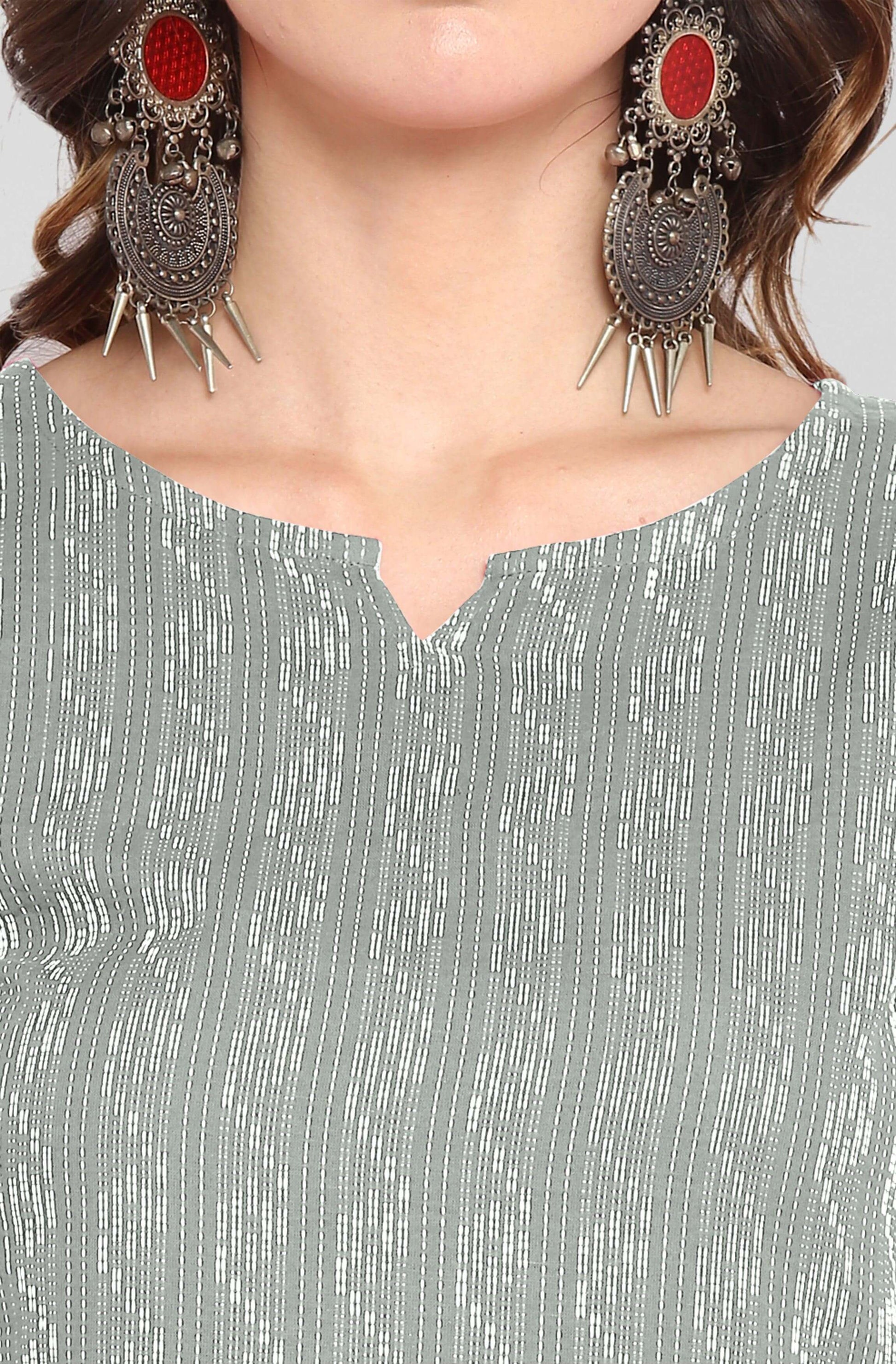 - Style:- Length: 44(inch) | Pattern: Woven Design | Occasion: Casual | Type: Straight | Sleeve Type: 3/4 Sleeves Regular Sleeves | Color: Grey