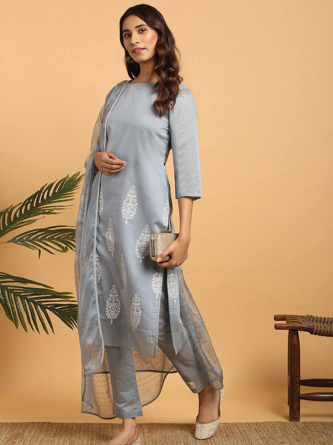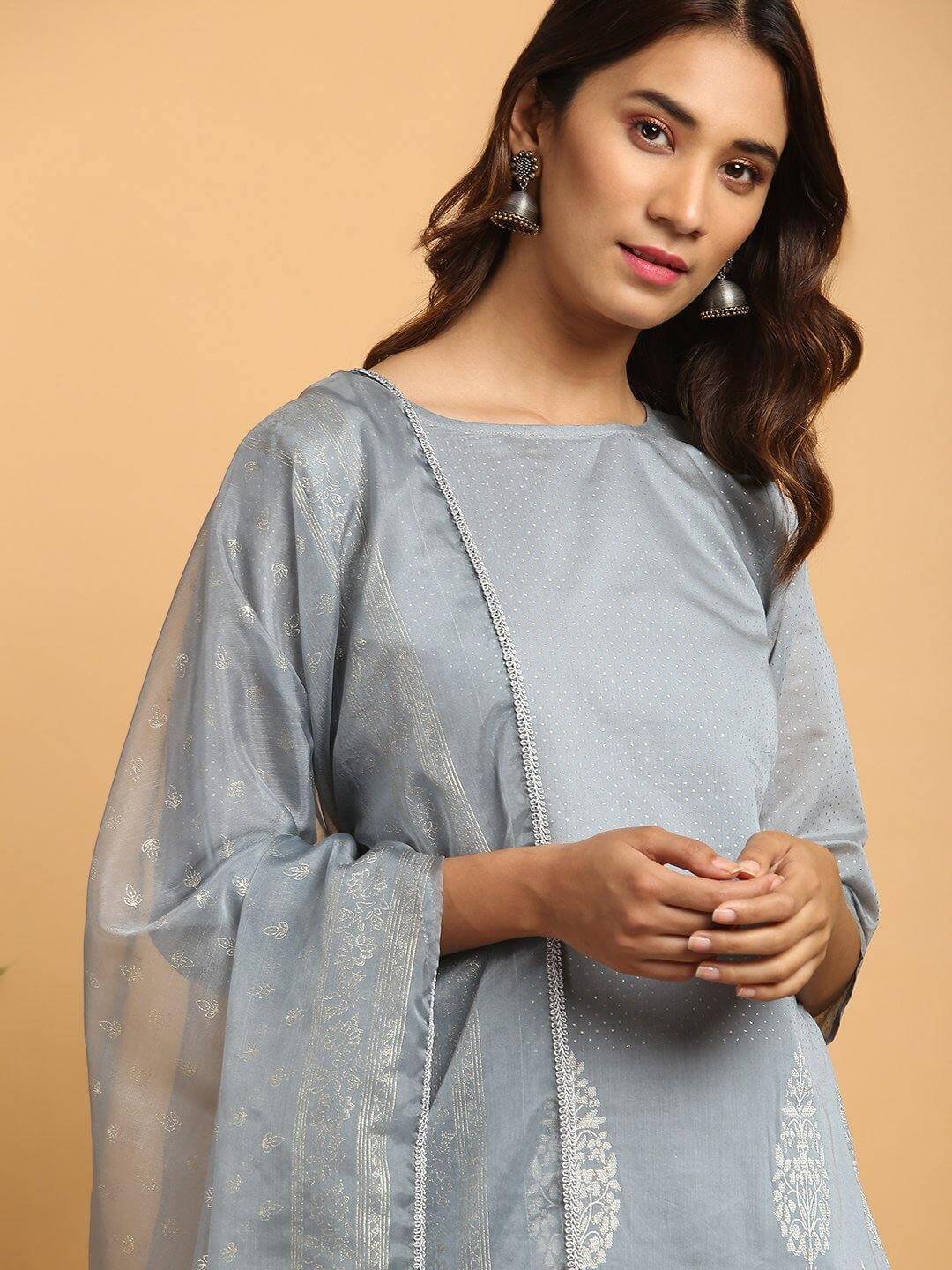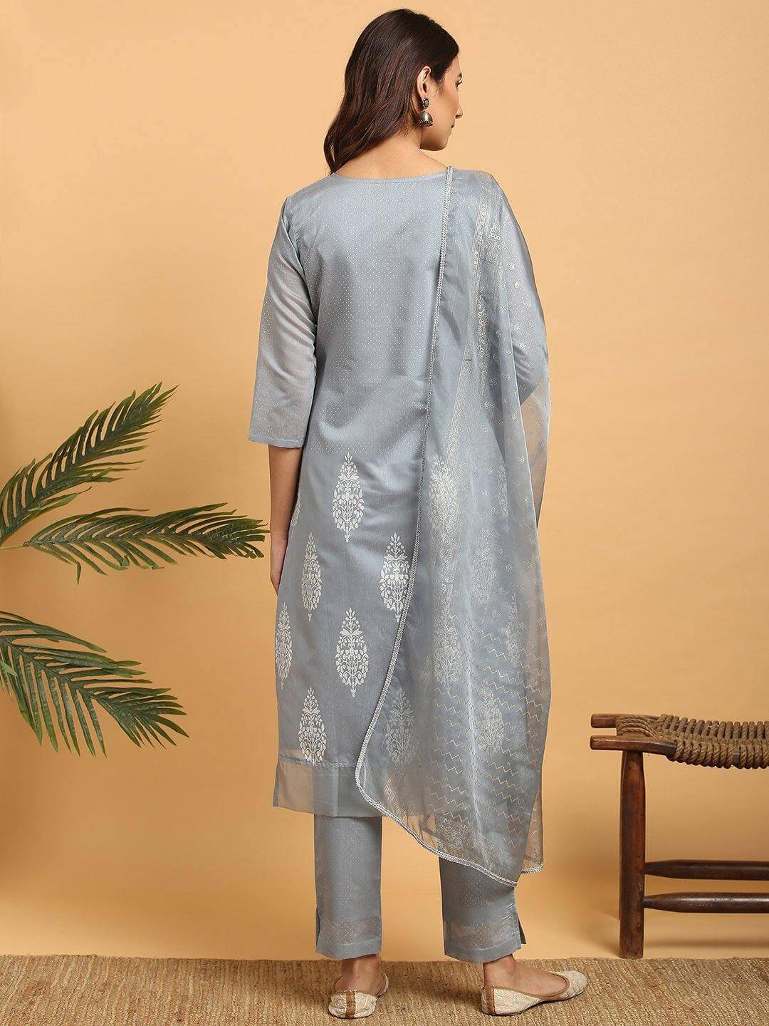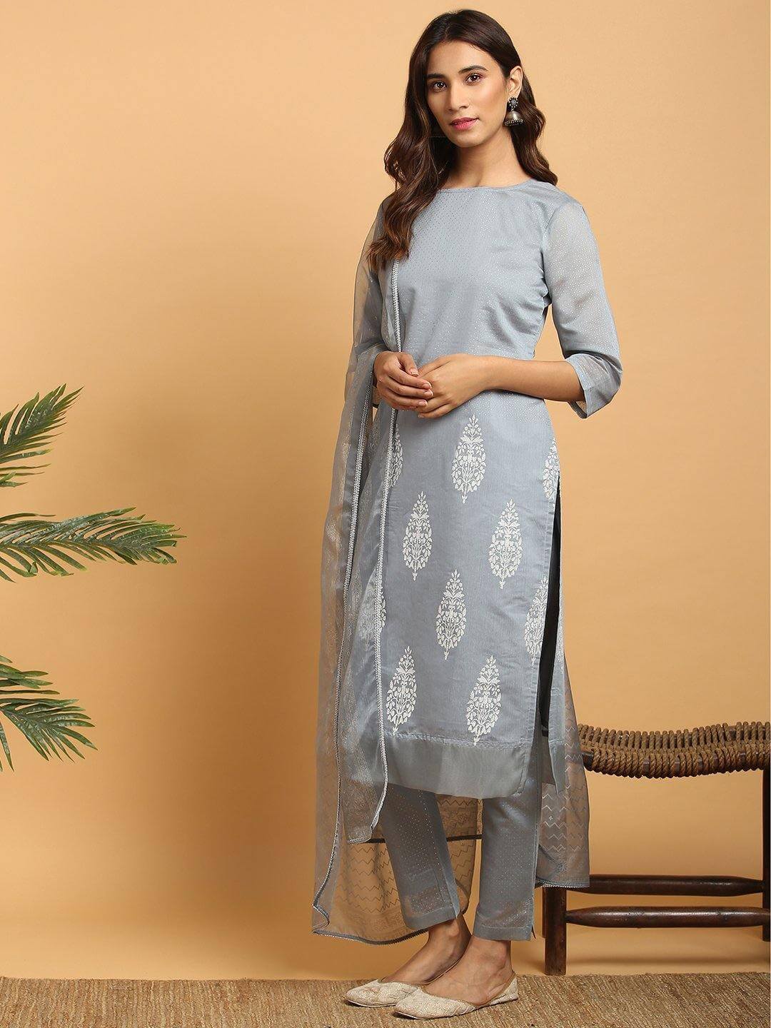 - Kurta Length: 44(inch) | Bottom Length: 35(inch) | Dupatta Color: Grey | Kurta Color: Grey | Pattern: Ethnic Motifs | Occasion: Party | Type: Straight | Sleeve Type: 3/4 Sleeves Regular Sleeves