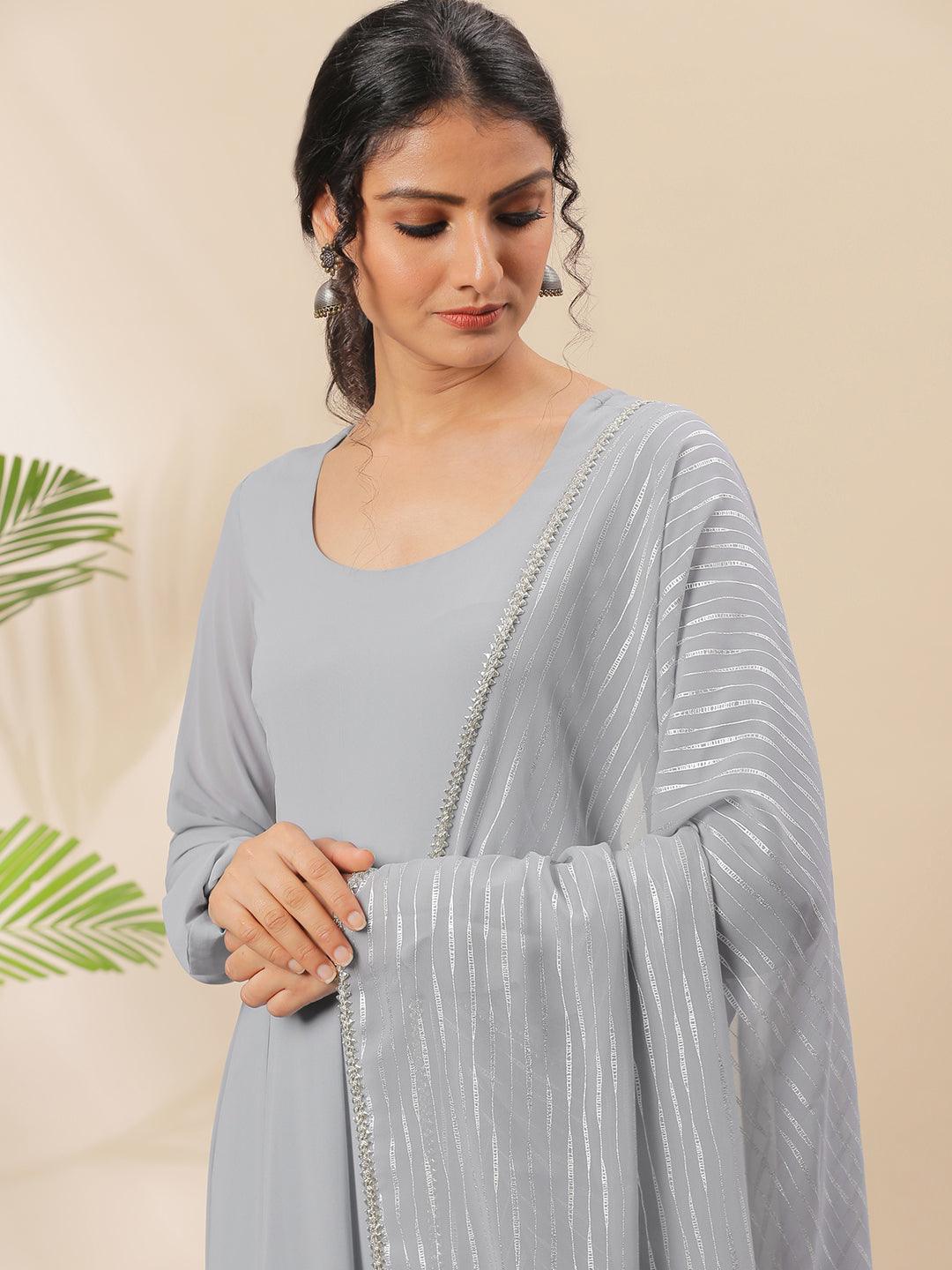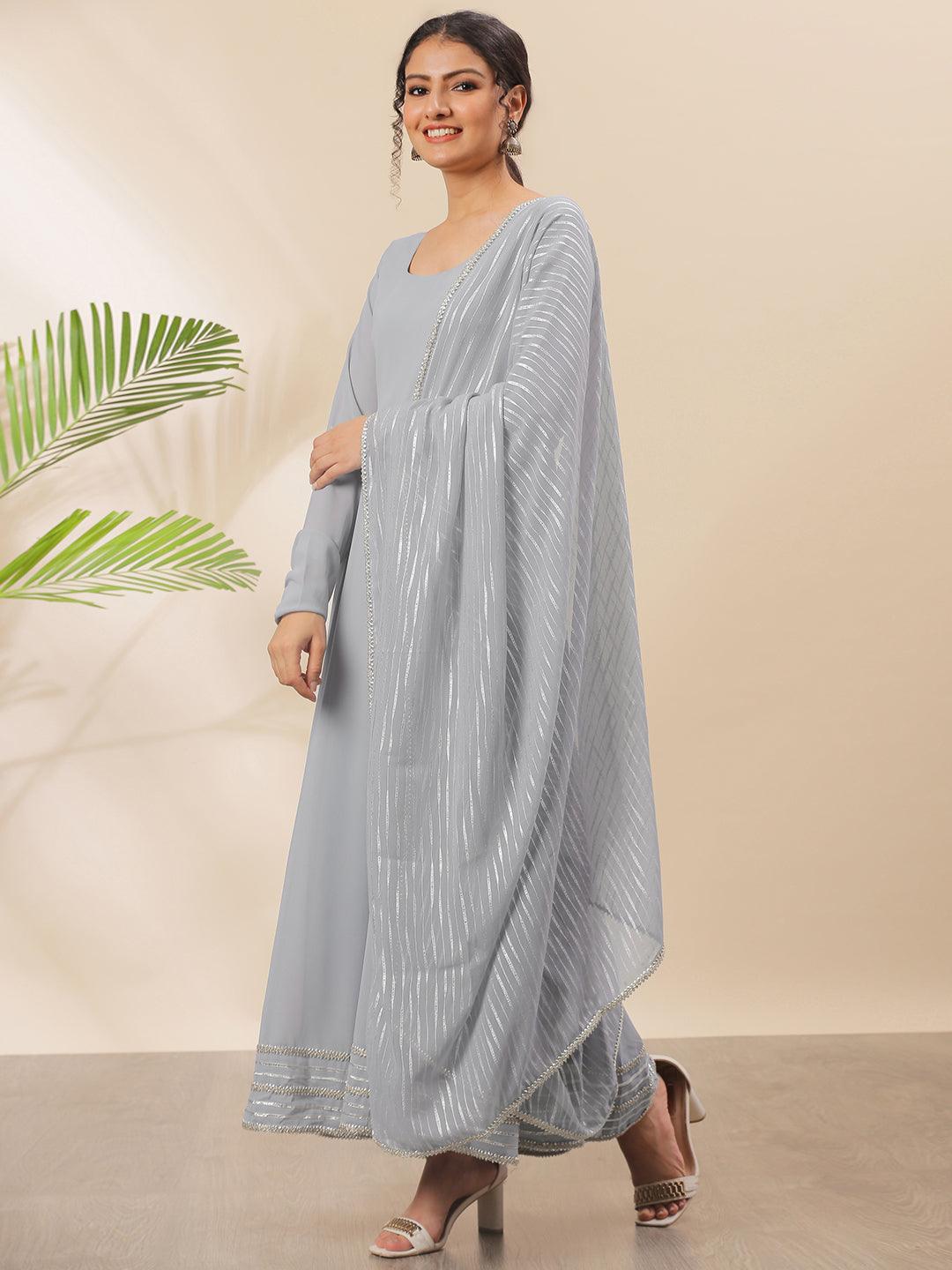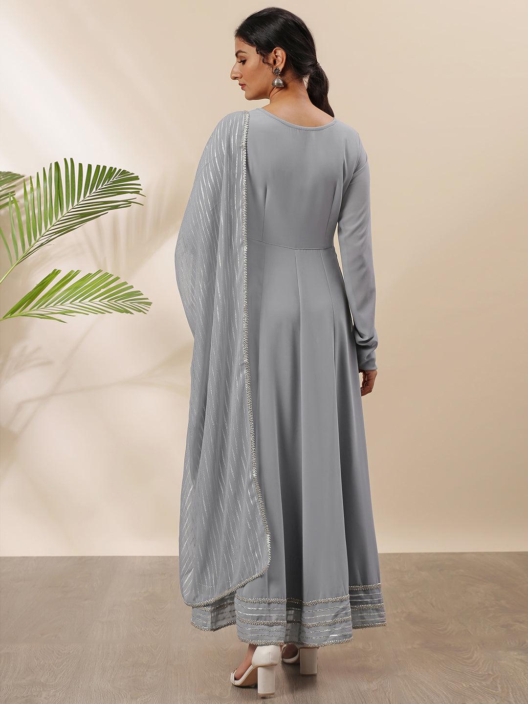- Kurta Length: 54(inch) | Dupatta Color: Grey | Kurta Color: Grey | Pattern: Solid | Occasion: Festive | Type: Anarkali | Sleeve Type: Full Sleeve Regular Sleeves