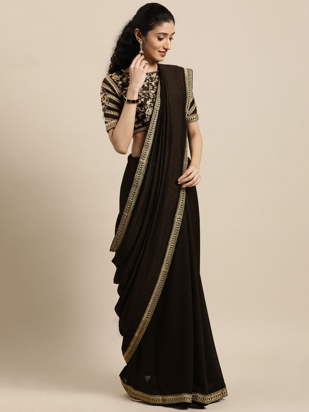 Janasya Women's Brown Poly Silk Solid Saree with Blouse Piece