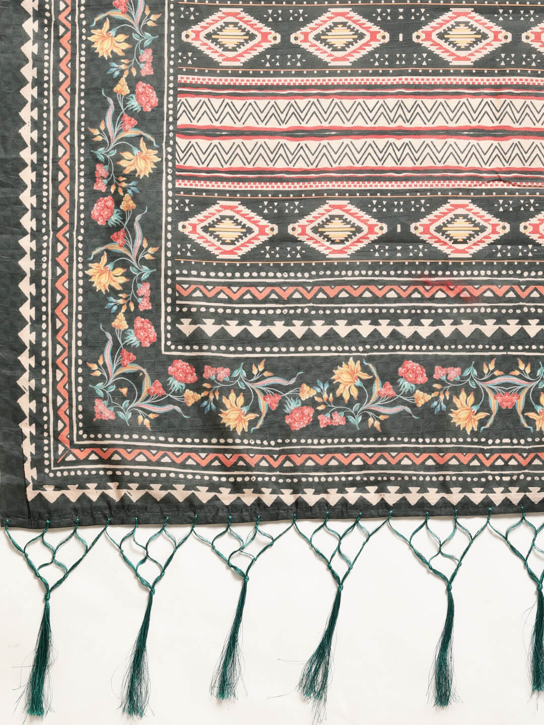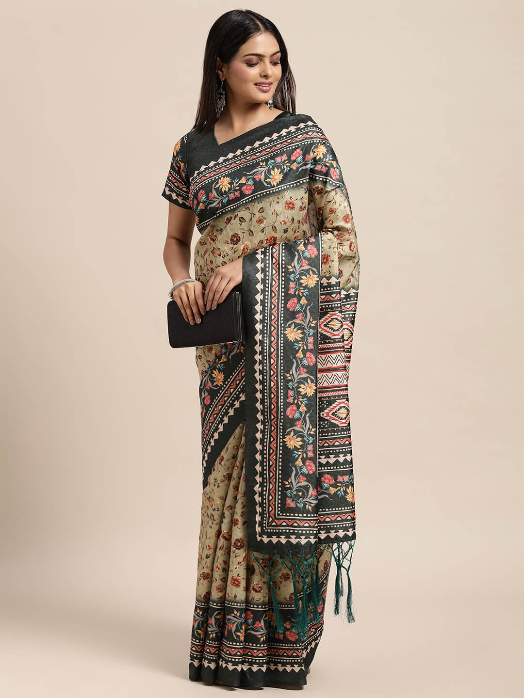 Janasya Women's Green Bhagalpuri Silk Printed Saree with Blouse Piece