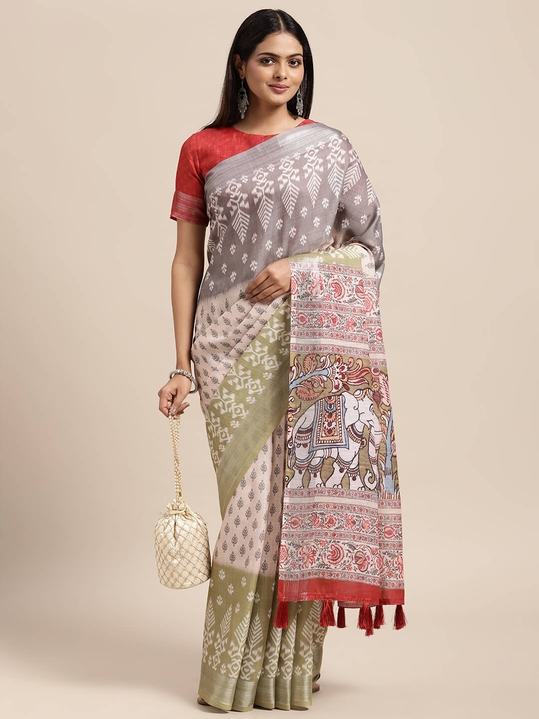 - Saree fabric: Linen Blend | Blouse Fabric: Linen Blend