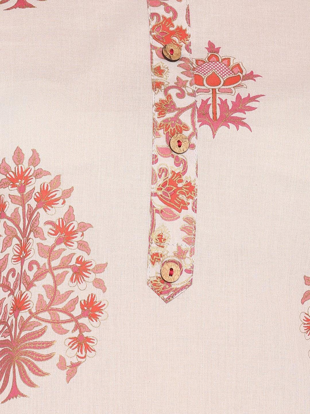 Lilac Cotton Block Print Kurta with Palazzo and Dupatta
