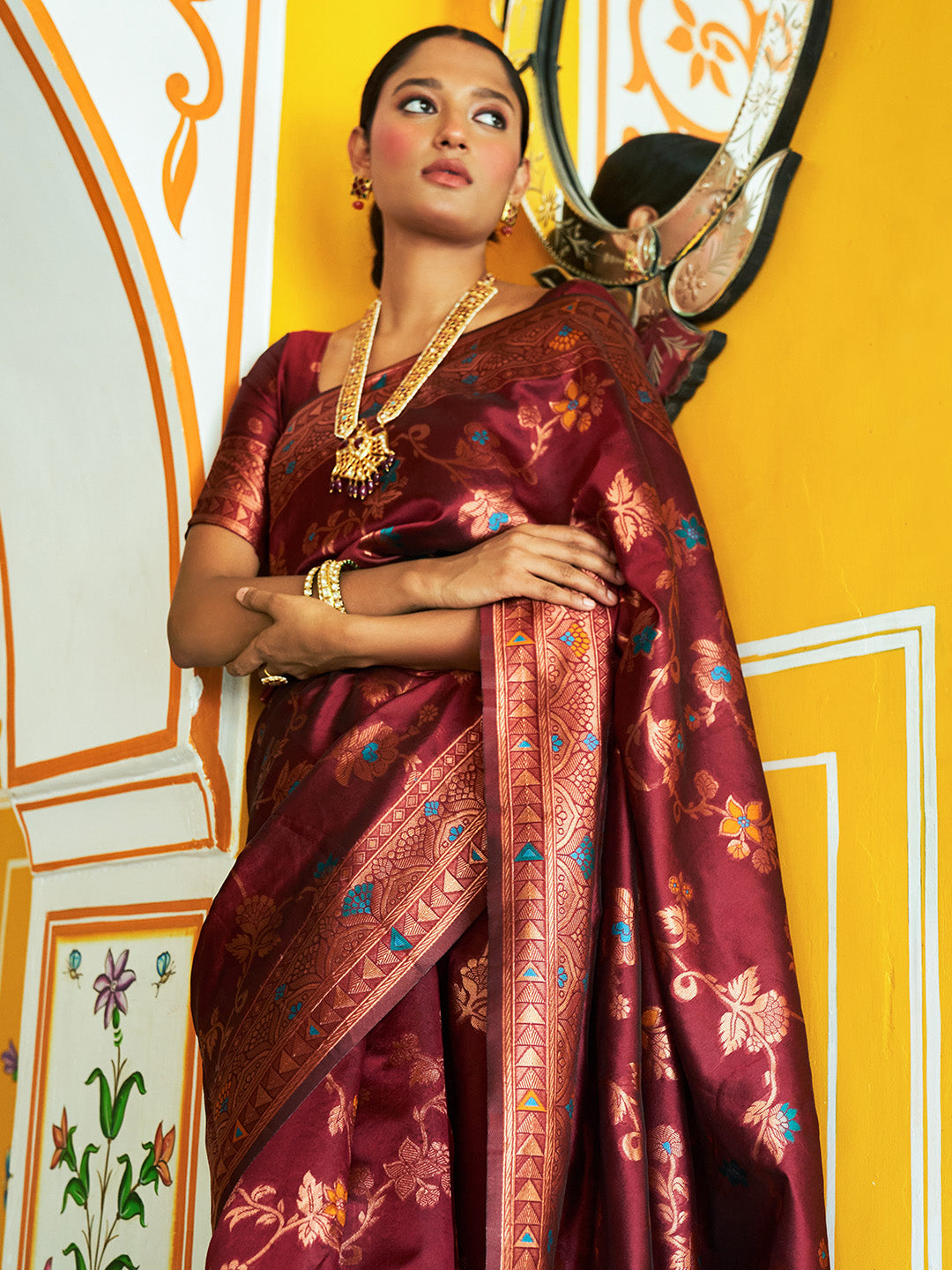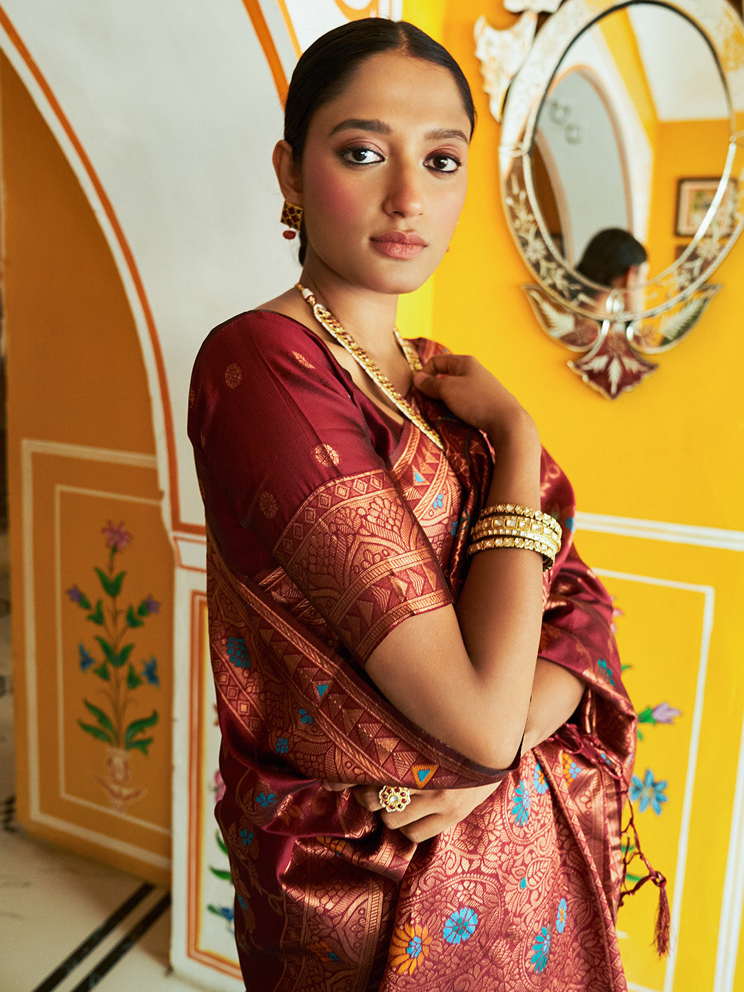 - Saree fabric: Banarasi Silk | Blouse Fabric: Banarasi Silk