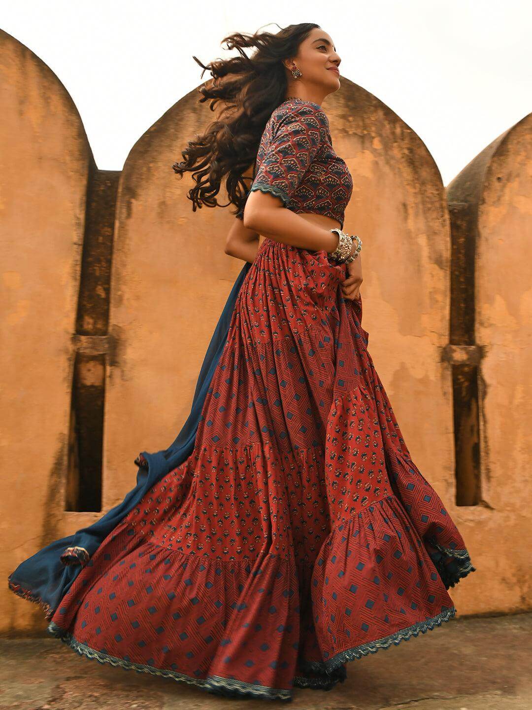 Maroon Cotton Block Print Lehenga Choli With Dupatta