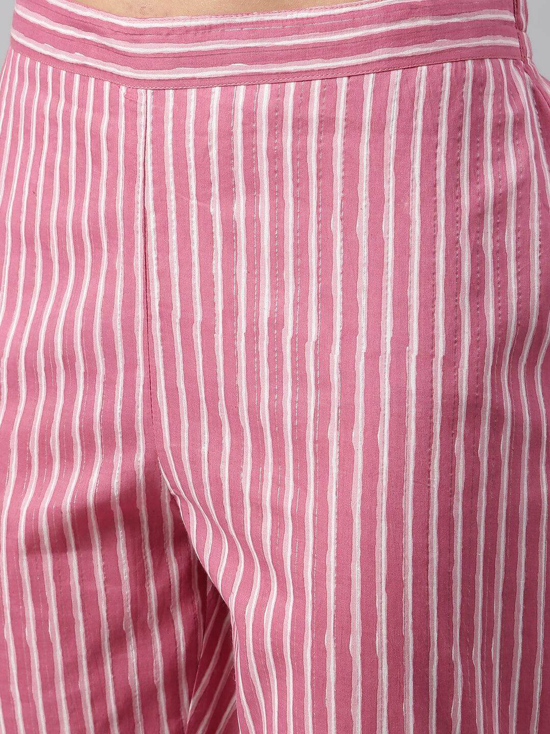 - Go vertical With this pink straight block printed kurta set made out of cotton to add to your comfort. It entails 3/4 Sleeve, mandarin collar, dupatta and straight Pant.