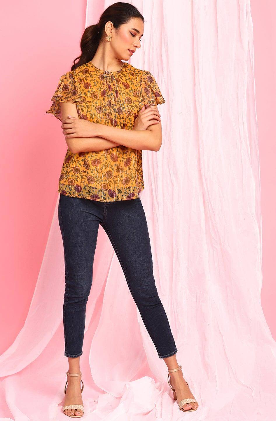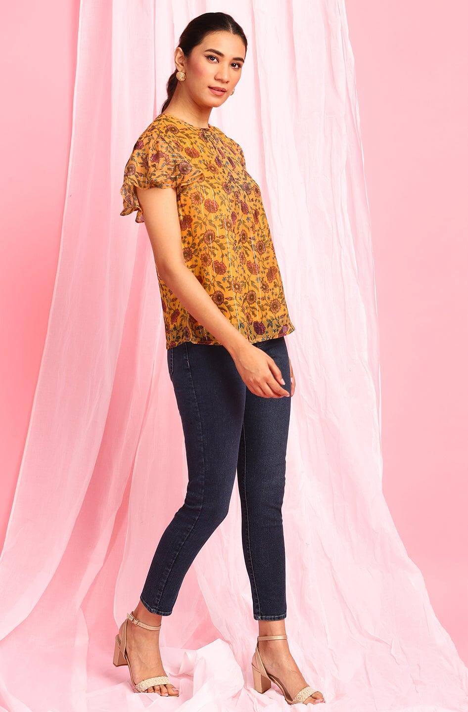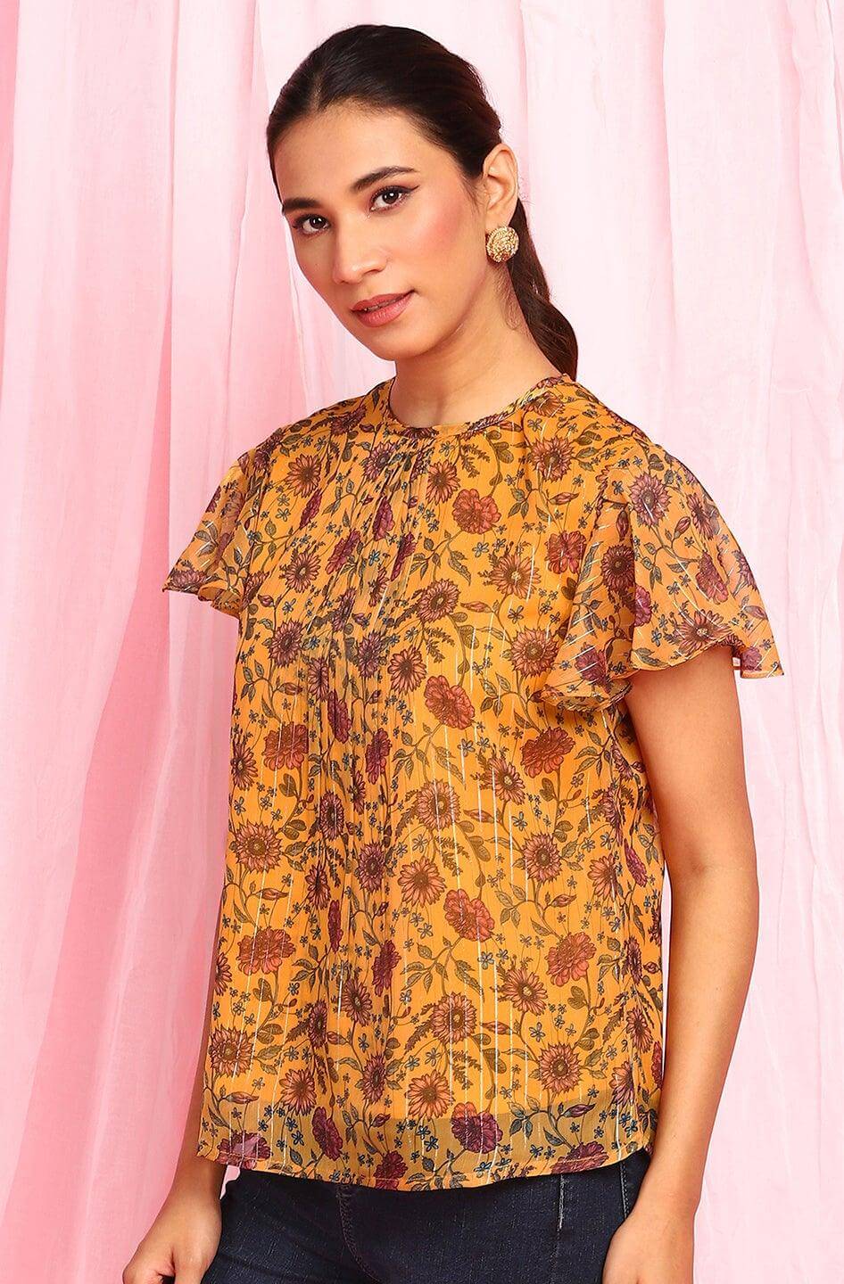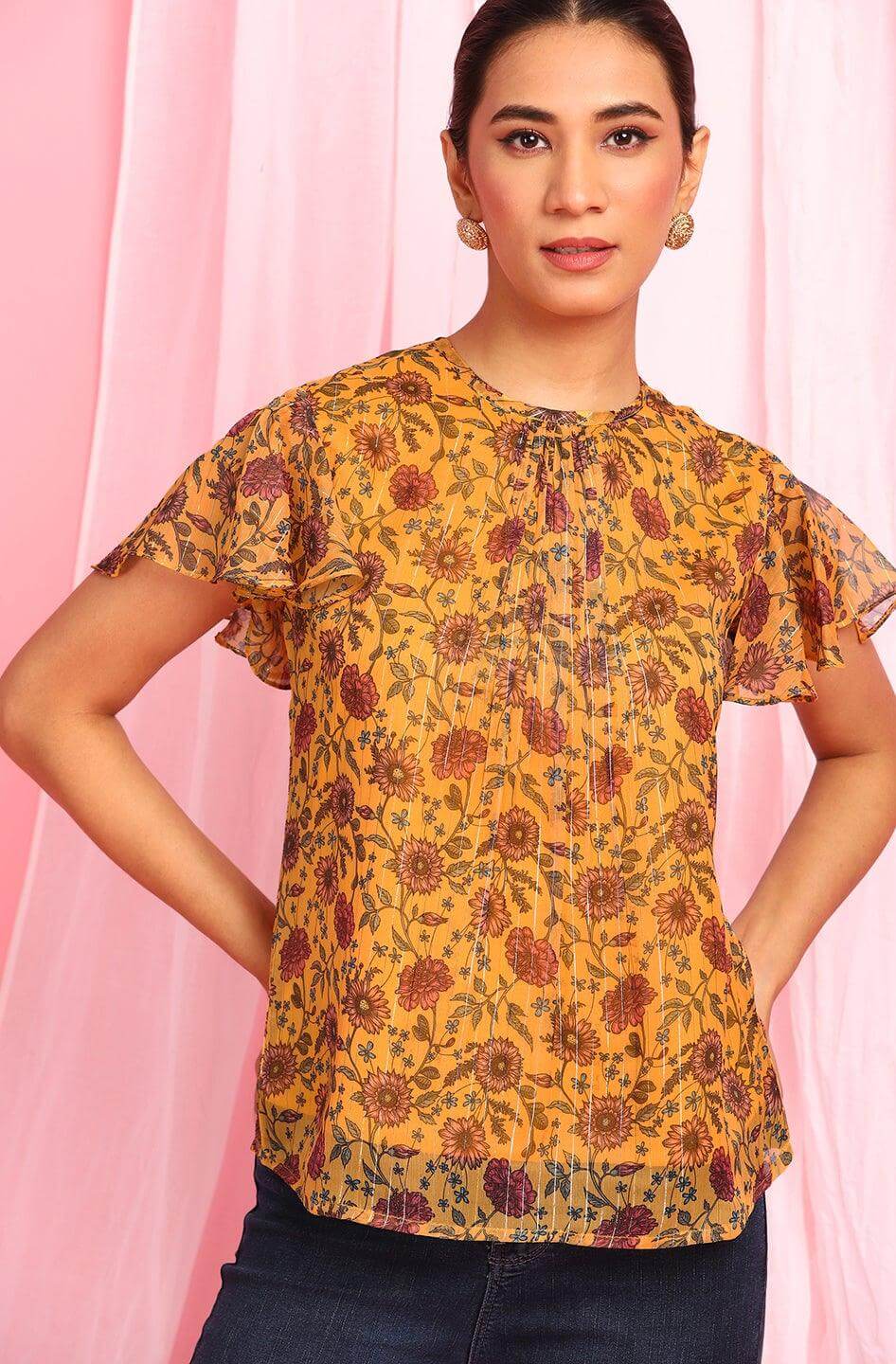 - Style:- Length: 24(inch) | Pattern: Floral Print | Occasion: Casual | Type: Regular| Sleeve Type: Half Sleeve (Bell Sleeve) | Color: Mustard