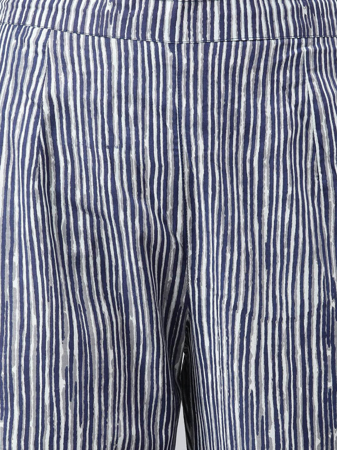- This festive wear Navy blue Kurta set with straight fit comes with gotta patti details and block print to enrich your occassional wear and make a bold statement with vertical stipes in Pant and Sleeve. With right pair of sandals and a solid contrast scarf there is no match to the outfit.