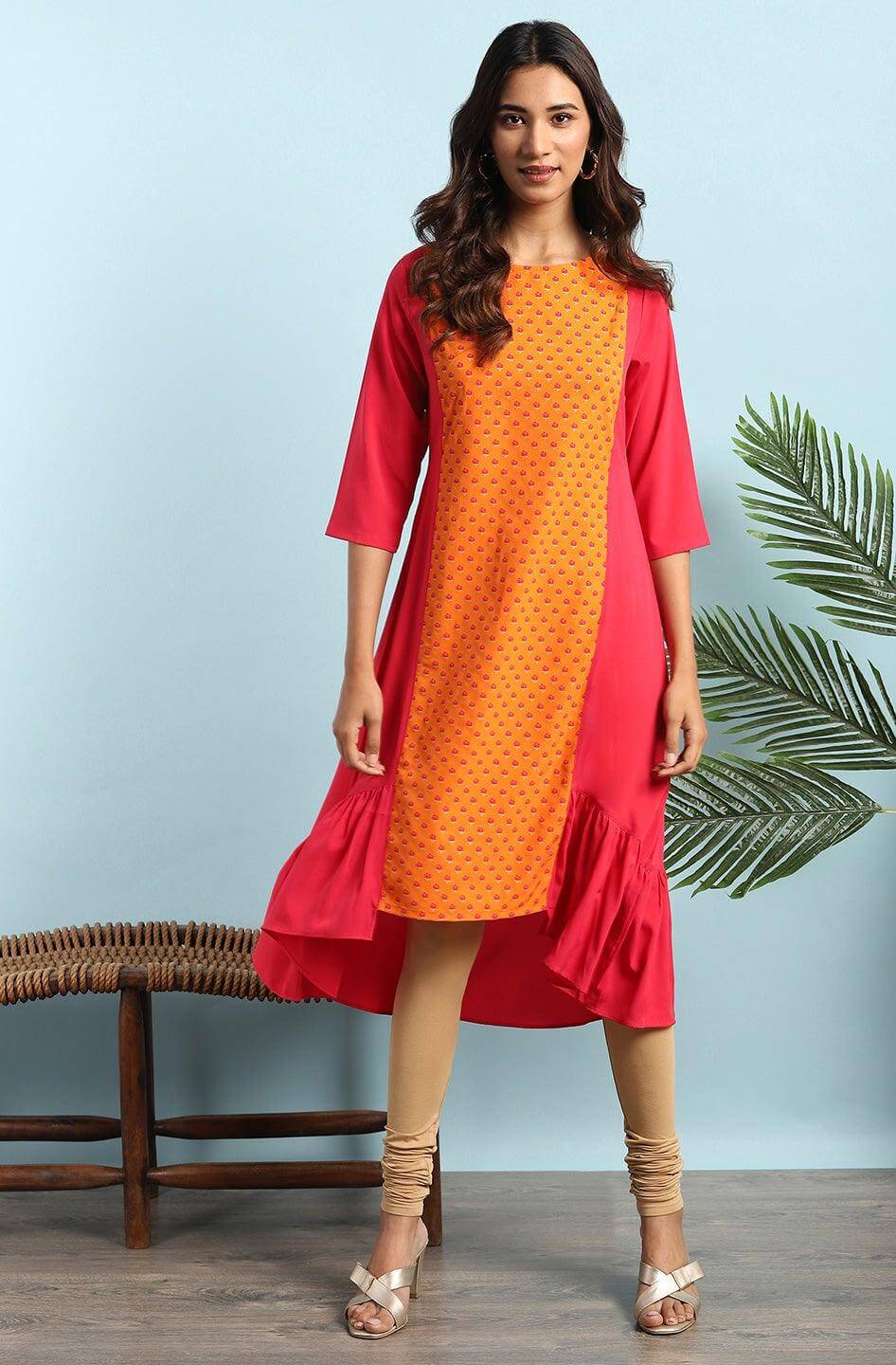 - Style:- Length: 46(inch) | Pattern: Floral Printed | Occasion: Casual | Type: A-Line | Sleeve Type: 3/4 Sleeves Regular Sleeves | Color: Orange