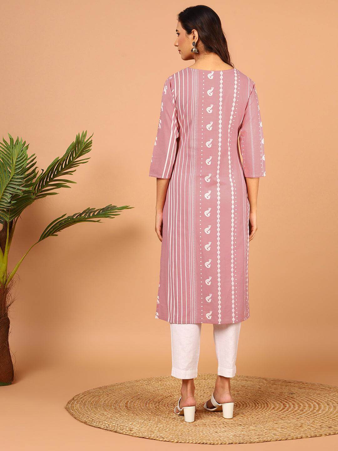 - Style:- Length: 44(inch) | Pattern: Animal Printed | Occasion: Casual | Type: Straight | Sleeve Type: 3/4 Sleeves Regular Sleeves | Color: Mauve