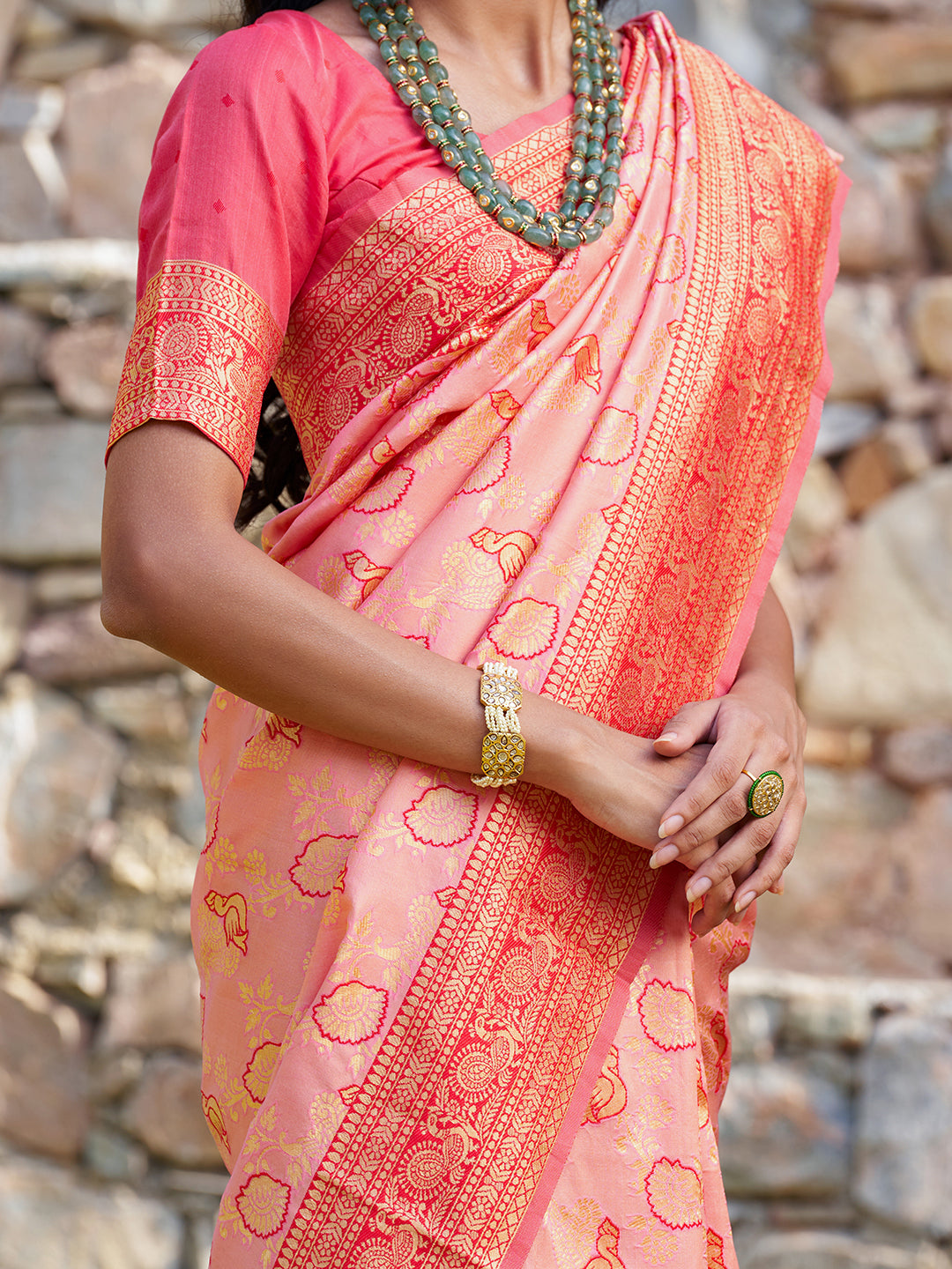 - Saree fabric: Banarasi Silk | Blouse Fabric: Banarasi Silk