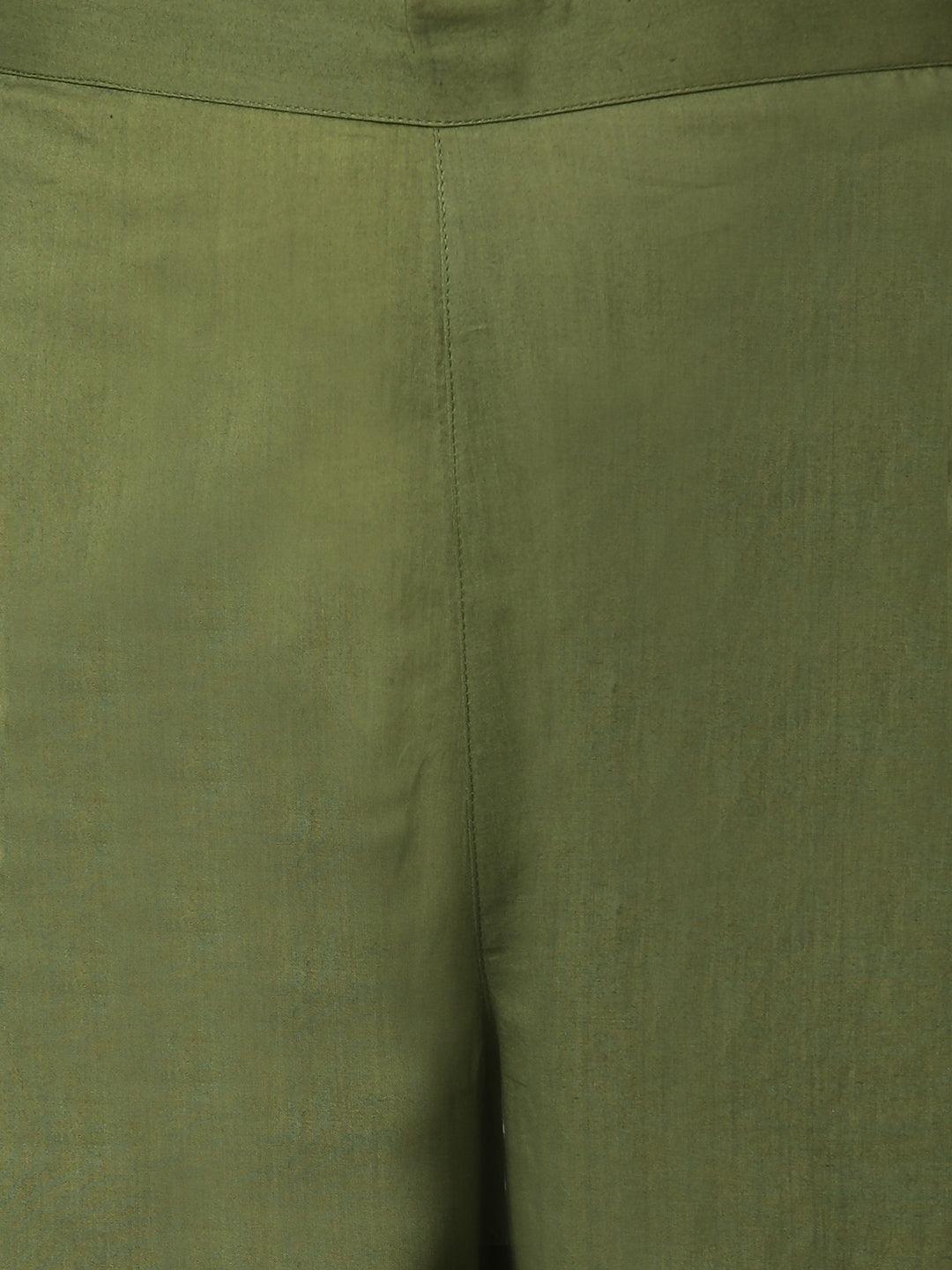 - Janasya brings for you the best flared green kurta set for your wardrobe which is apt for every occasion. This set features round neckline which has a delicate lacework and 3/4th Sleeve with lace at the hem of the Sleeve. It comes along with printed palazzo and dupatta which emphasises the whole look. Style it up with statement jewellery to complete the look.