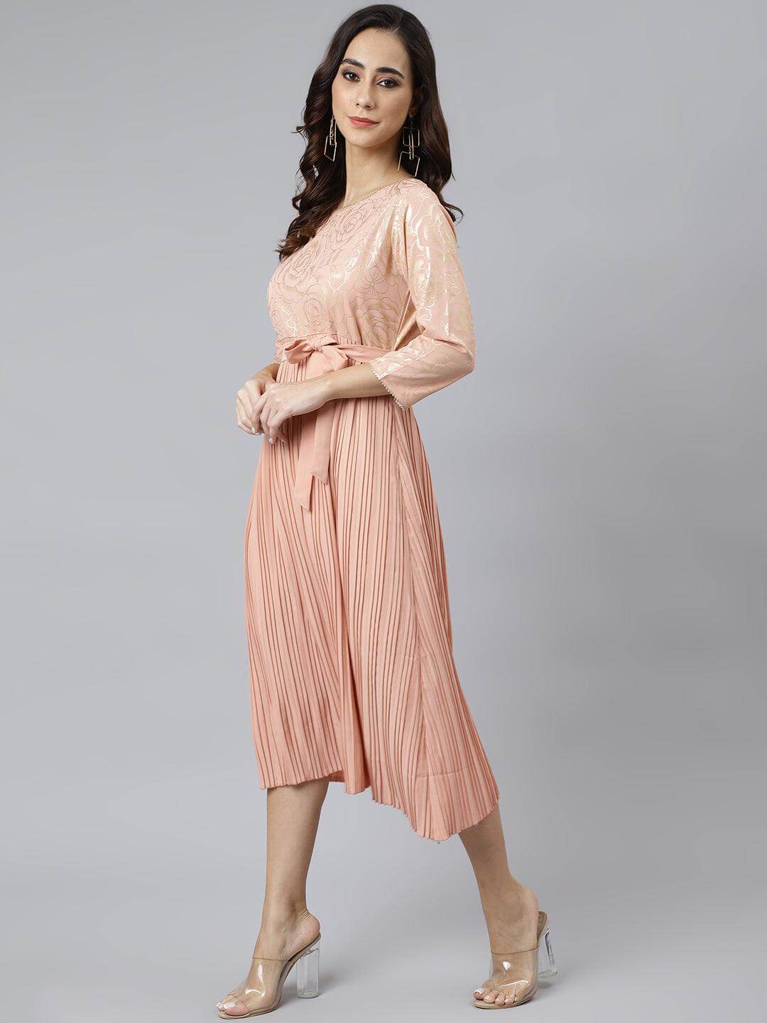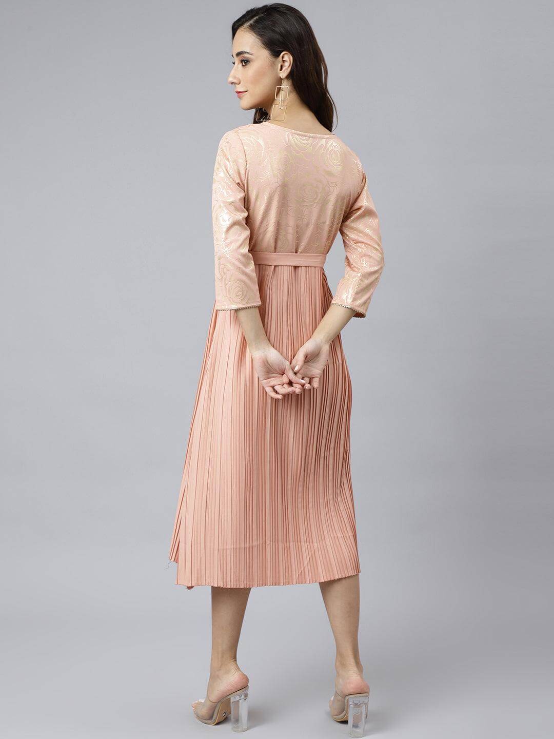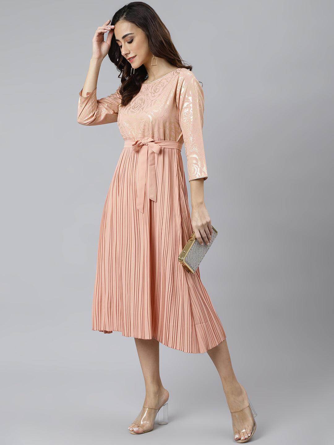 - Style:- Length: 45(inch) | Pattern: Botanical Printed | Occasion: Casual | Type: Flared | Sleeve Type: 3/4 Sleeves Regular Sleeves | Color: Peach